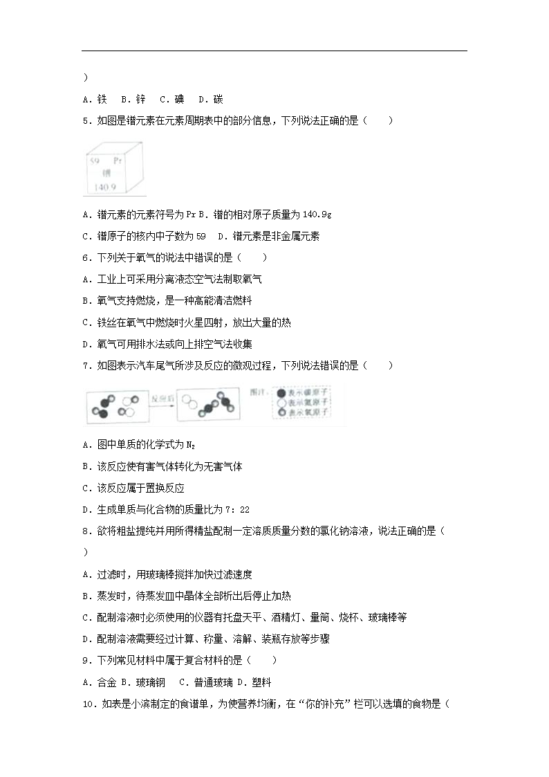 【文档名称】 2017山东省滨州市中考化学真题及答案(Word版).doc