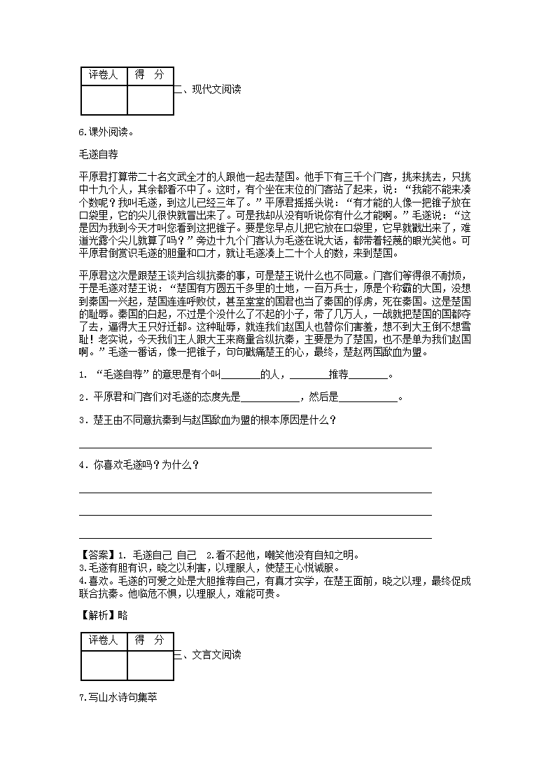【文档预览】 无忧考网整理发布2019年四川小升初语文真题及答案(Word版),前五页预览如下: