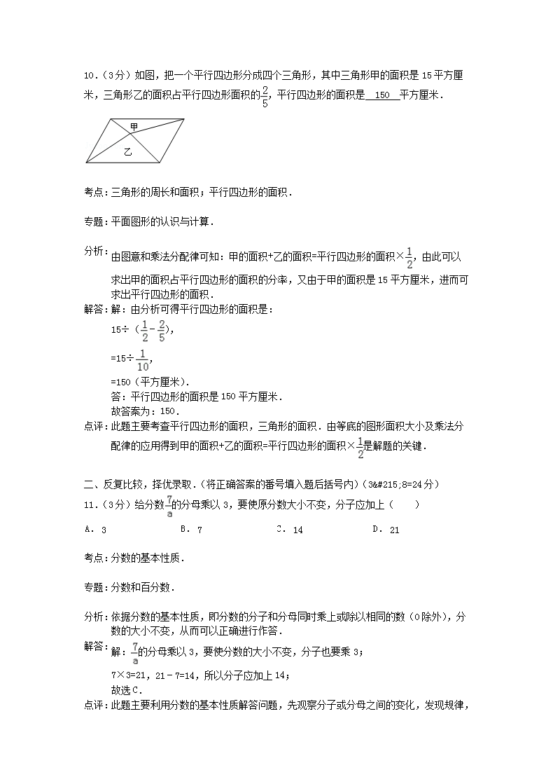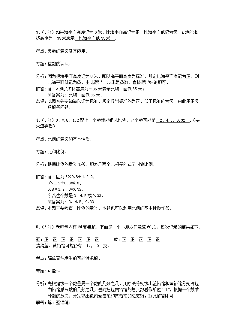 【文档名称】 2015年四川绵阳小升初数学真题及答案(Word版).doc