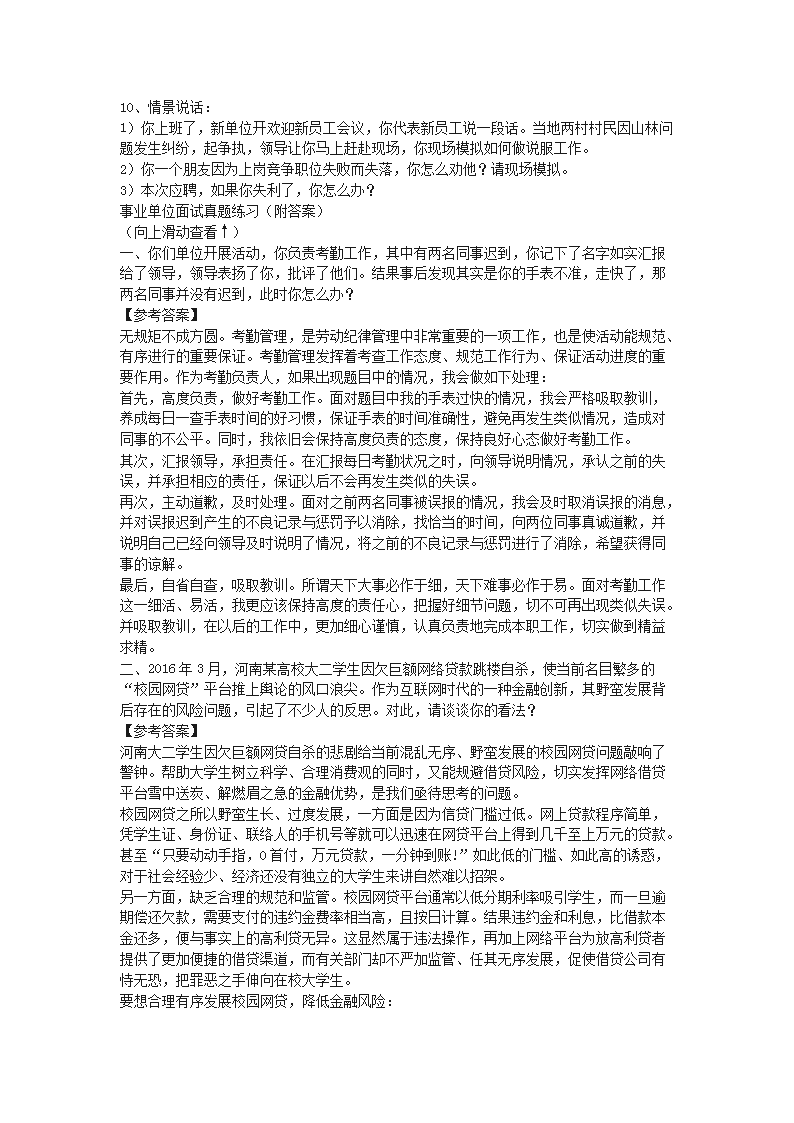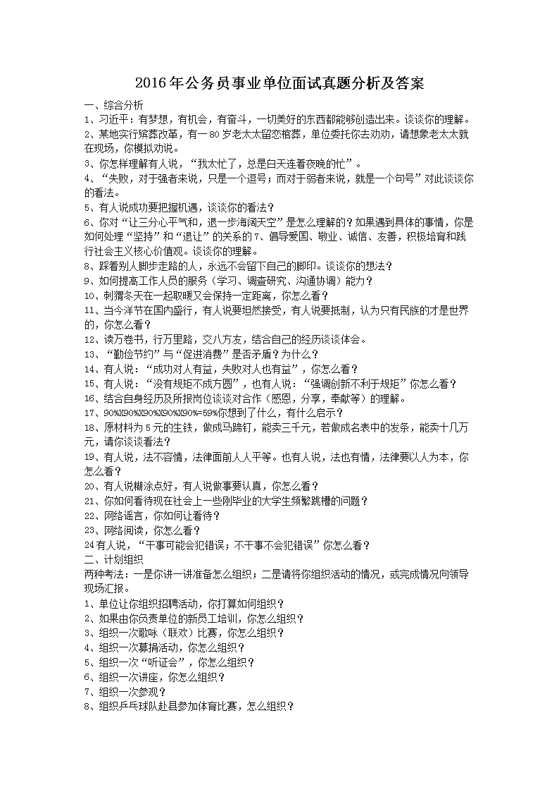 【文档名称】 2016年公务员事业单位面试真题分析及答案(Word版).doc