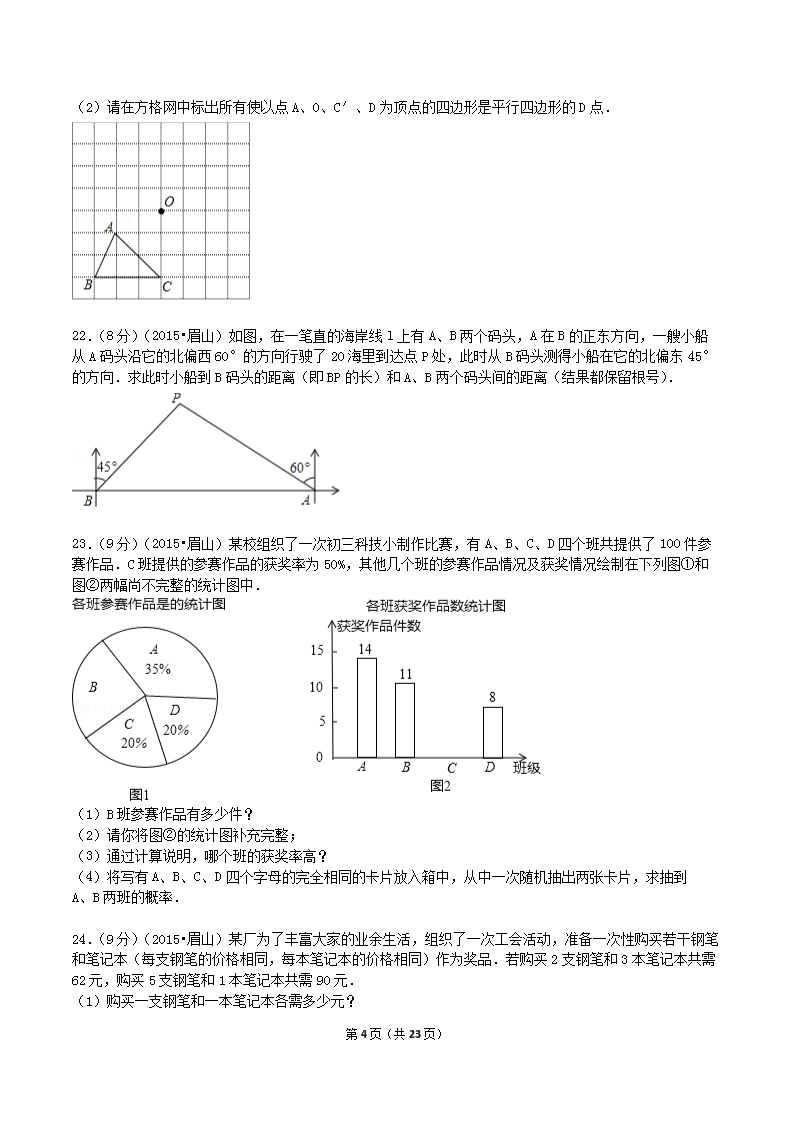 【文档名称】 2015年四川省眉山市中考数学真题及答案(Word版).doc