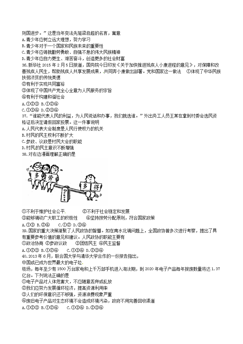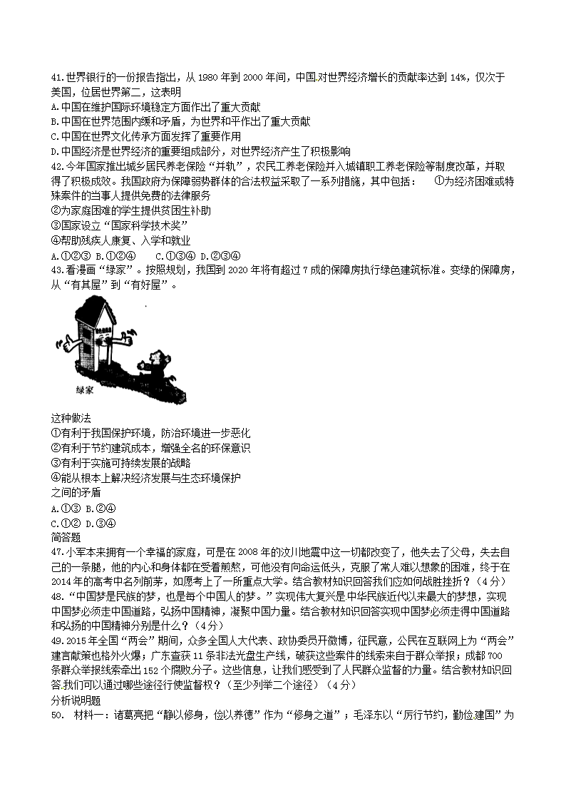 【文档名称】 2015年四川省眉山市中考政治真题及答案(Word版).doc