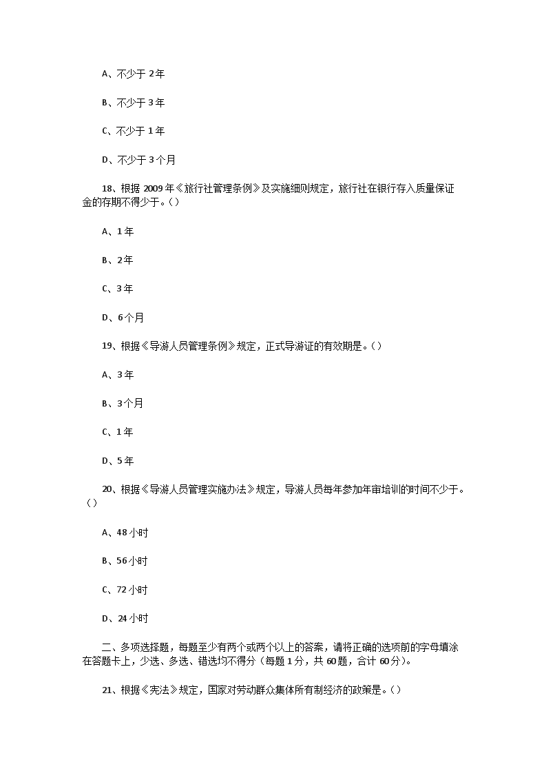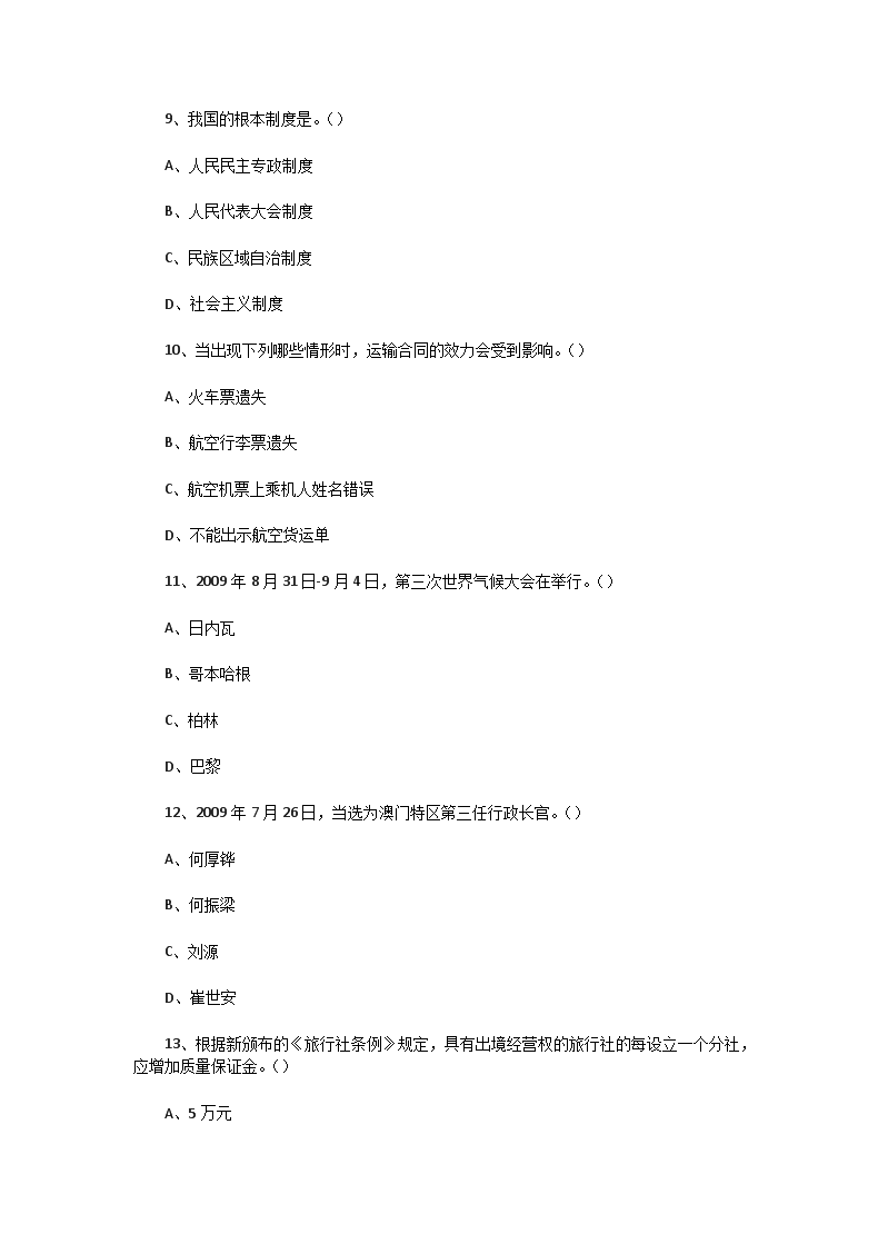 【文档名称】 2009年新疆导游资格考试政策与法规真题(Word版).doc