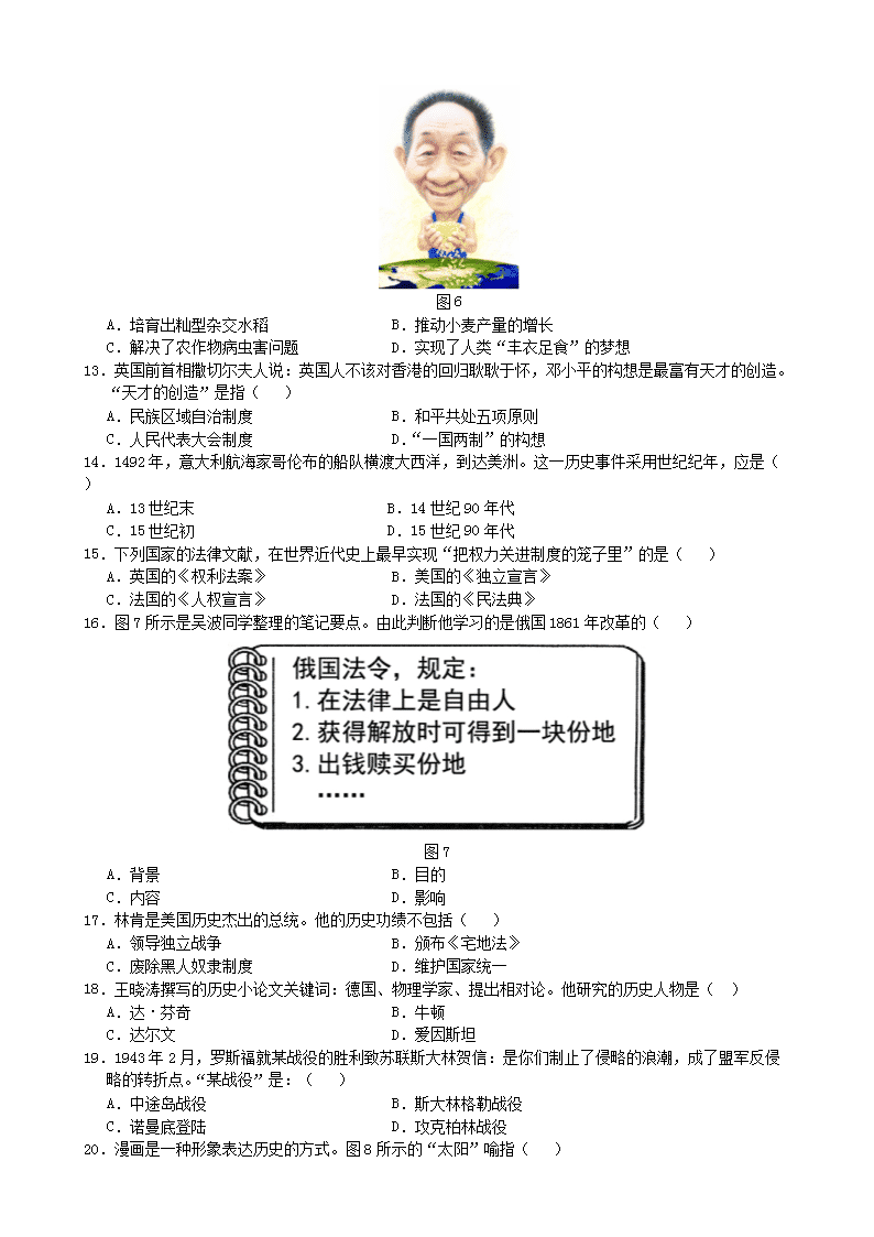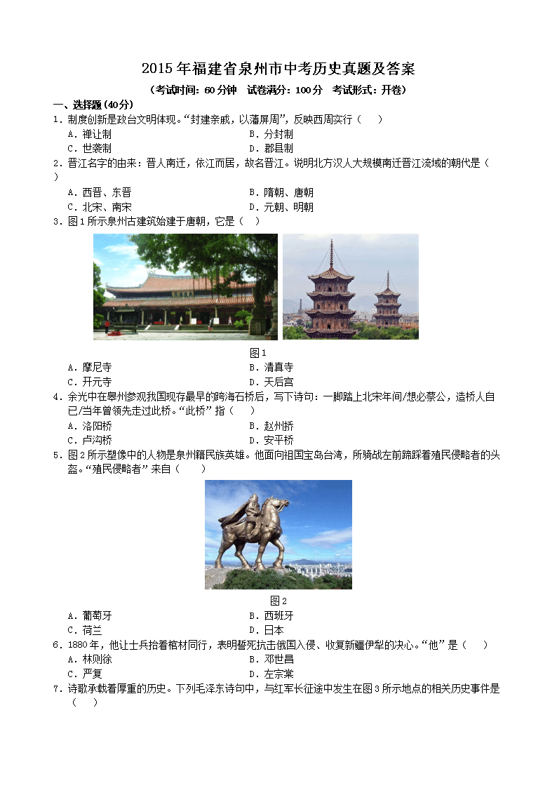 【文档名称】 2015年福建省泉州市中考历史真题及答案(Word版).doc