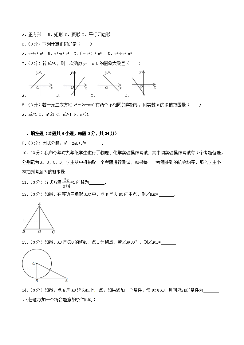 【文档名称】 2018年湖南省湘潭市中考数学真题及答案(Word版).doc