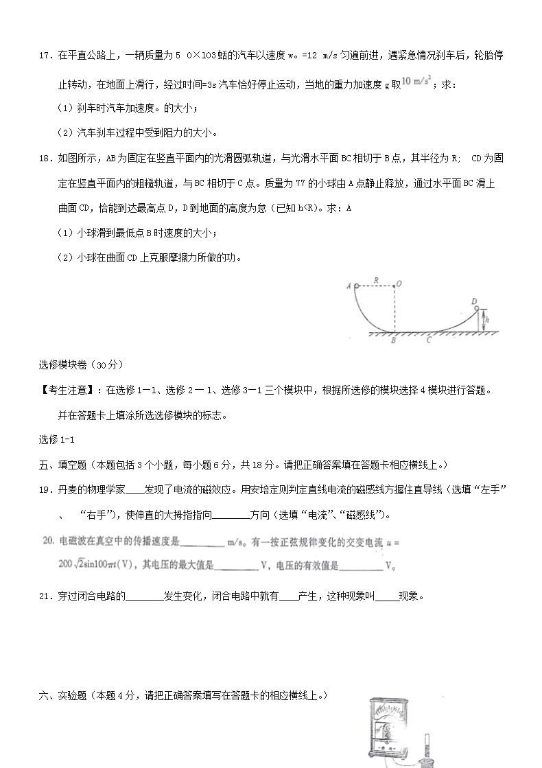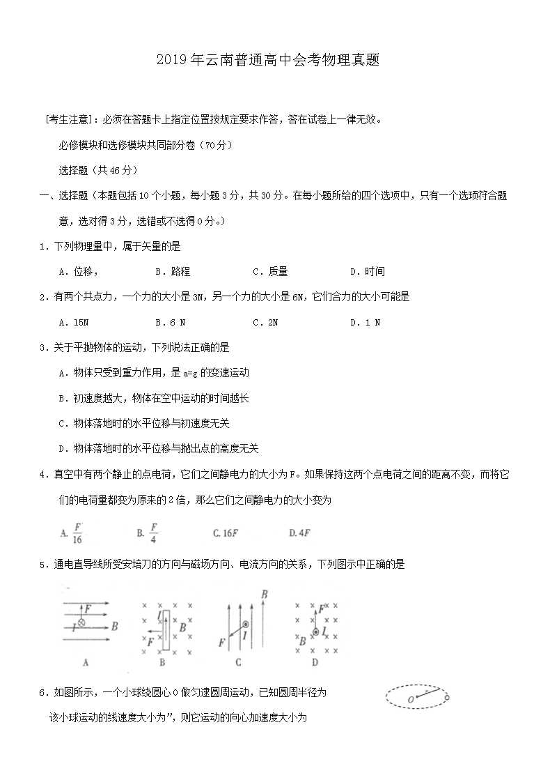 【文档名称】 2019年云南普通高中会考物理真题(Word版).doc