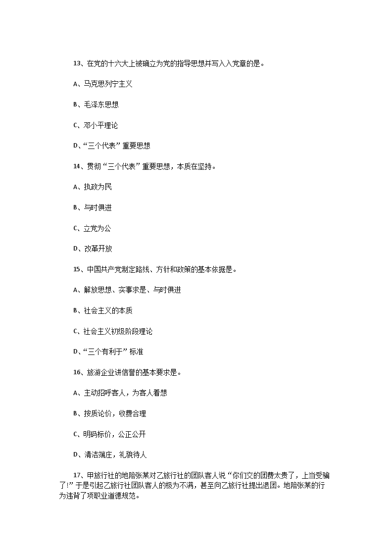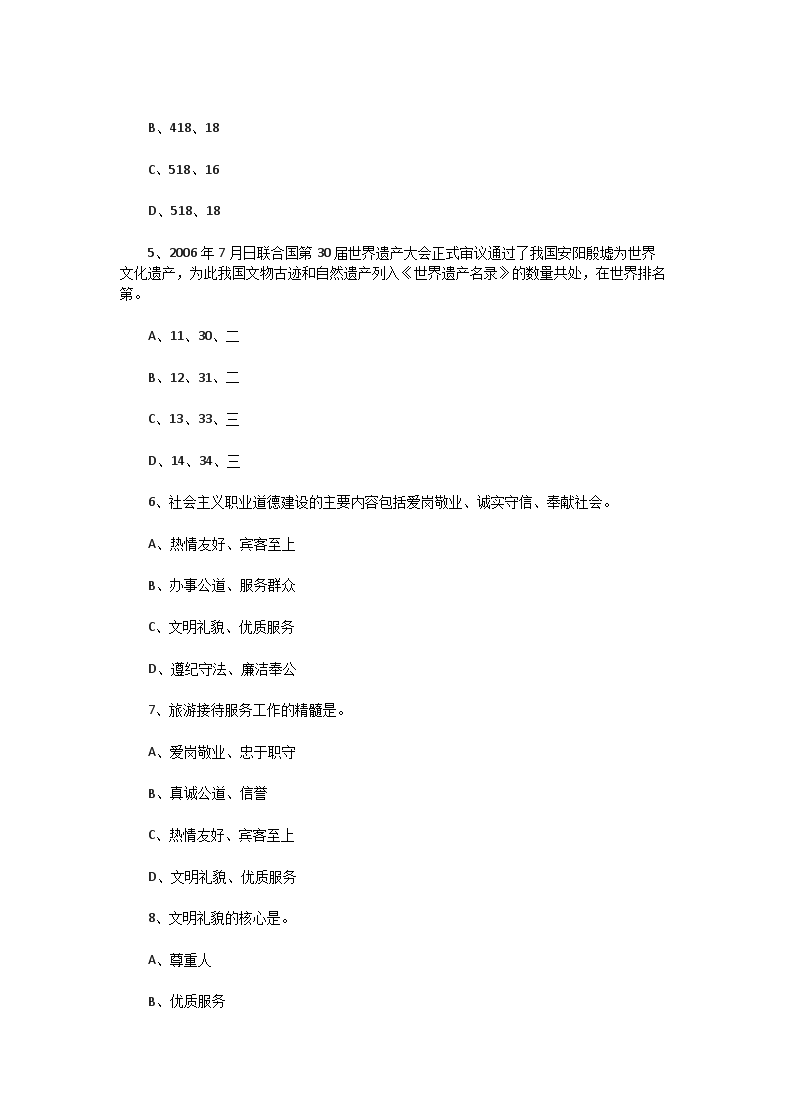 【文档名称】 2006年辽宁导游资格考试政策与法规真题(Word版).doc