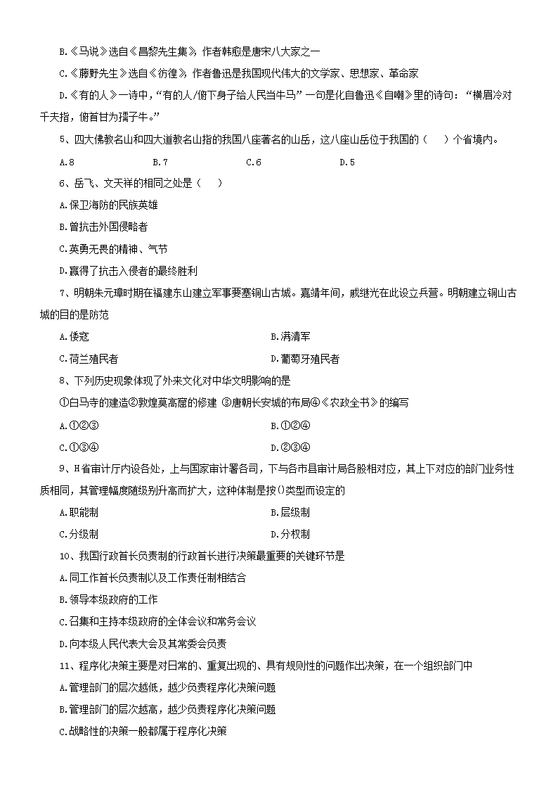 【文档名称】 2011年上海公务员行测考试真题及答案A卷(Word版).doc