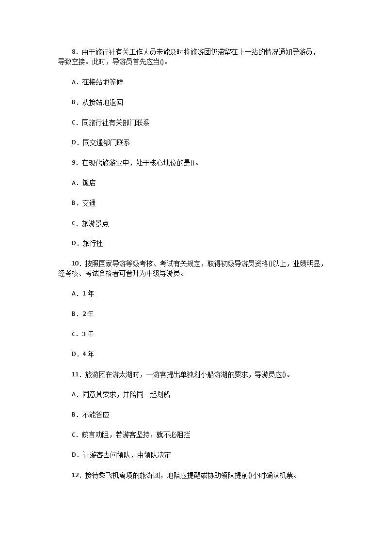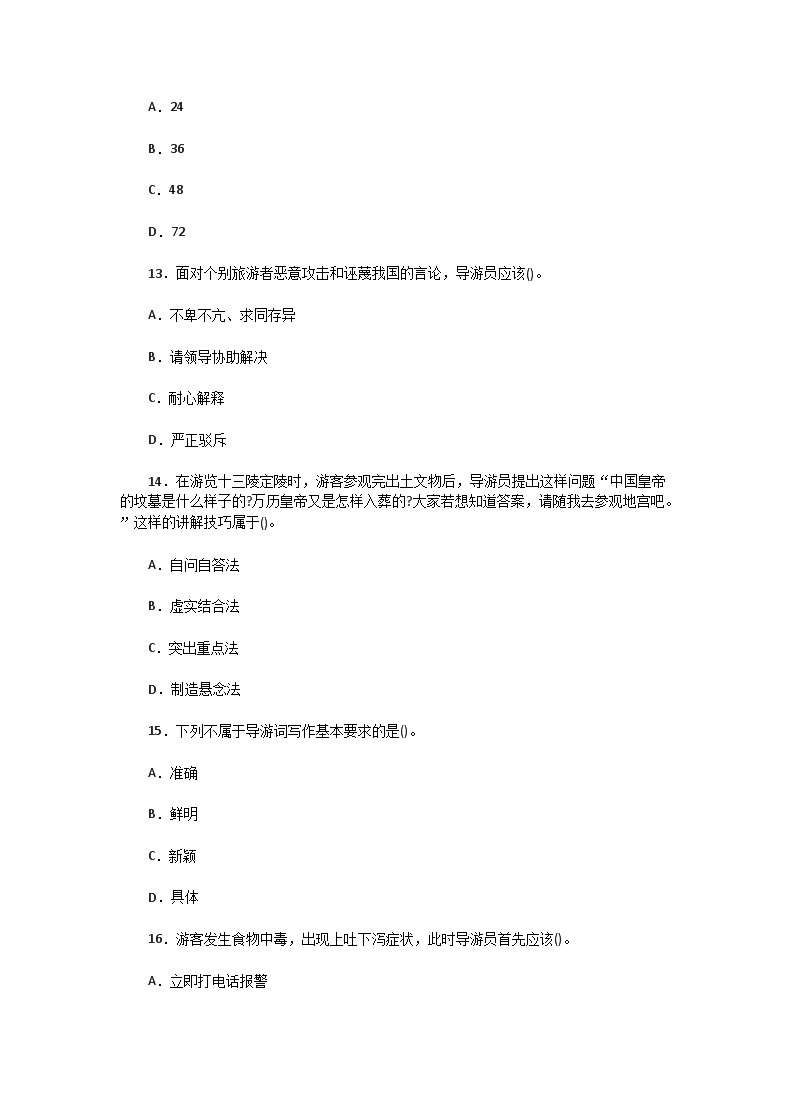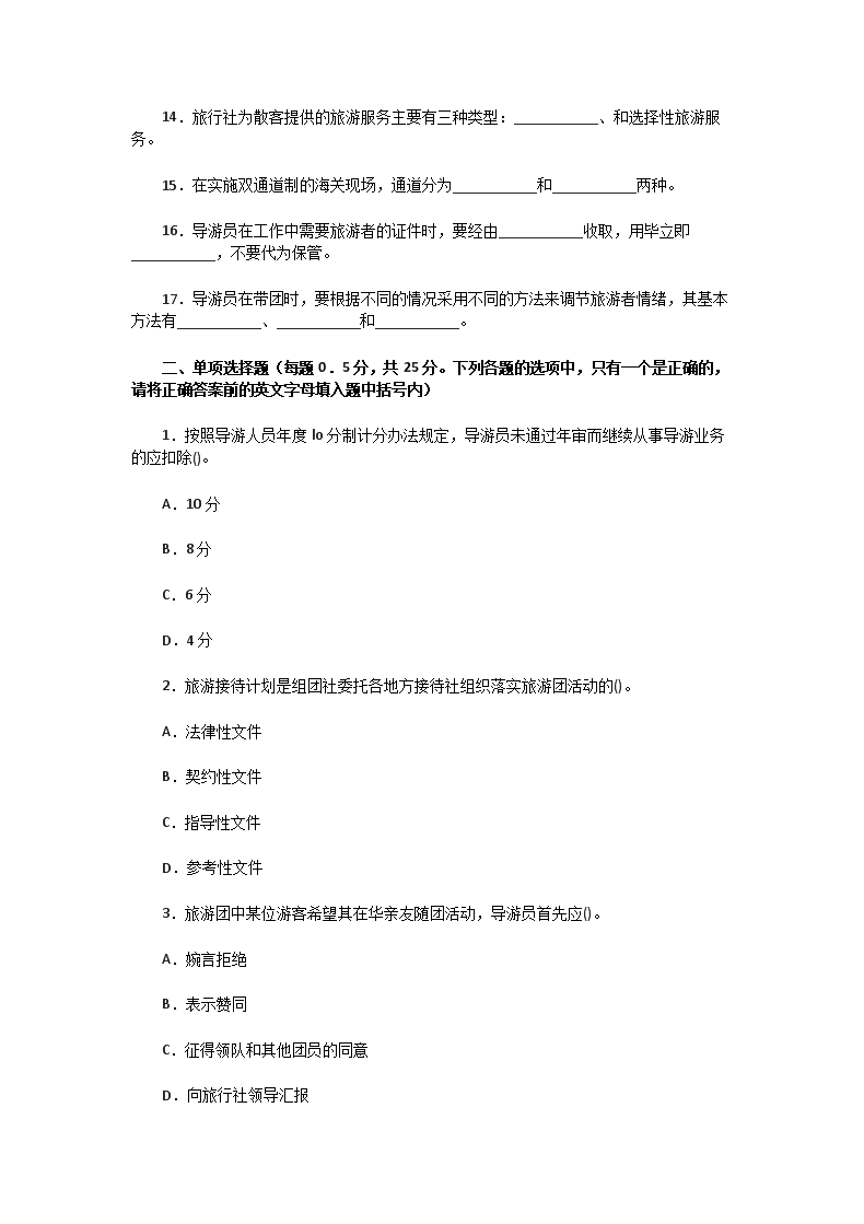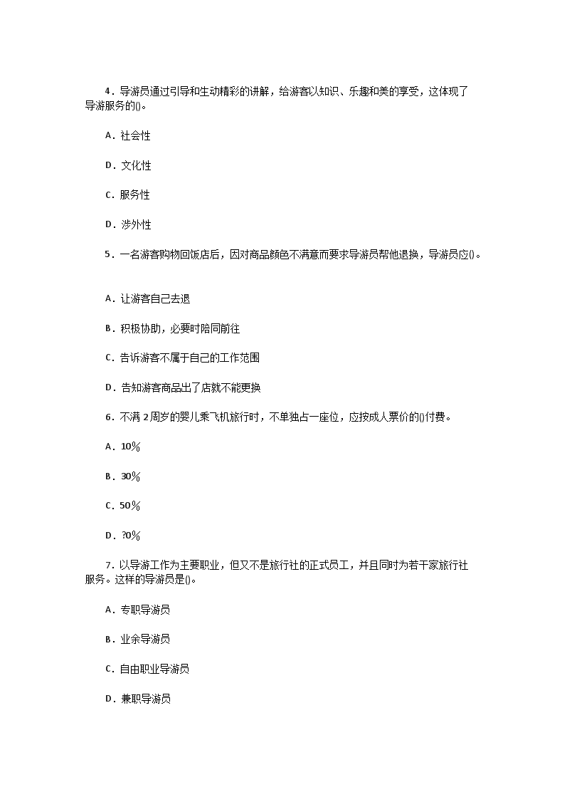 【文档名称】 2007年江苏导游资格考试导游服务技能真题及答案(Word版).doc