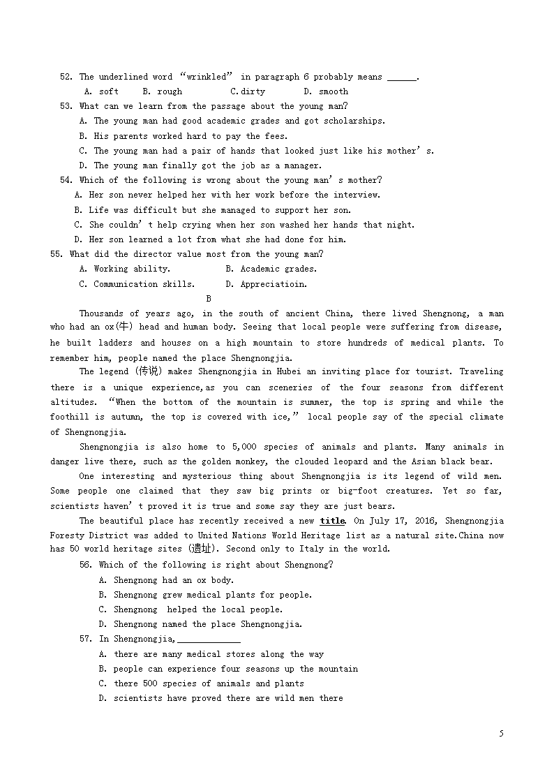 【文档预览】 无忧考网整理发布2017年湖北省咸宁市中考英语真题及答案(Word版),前五页预览如下: