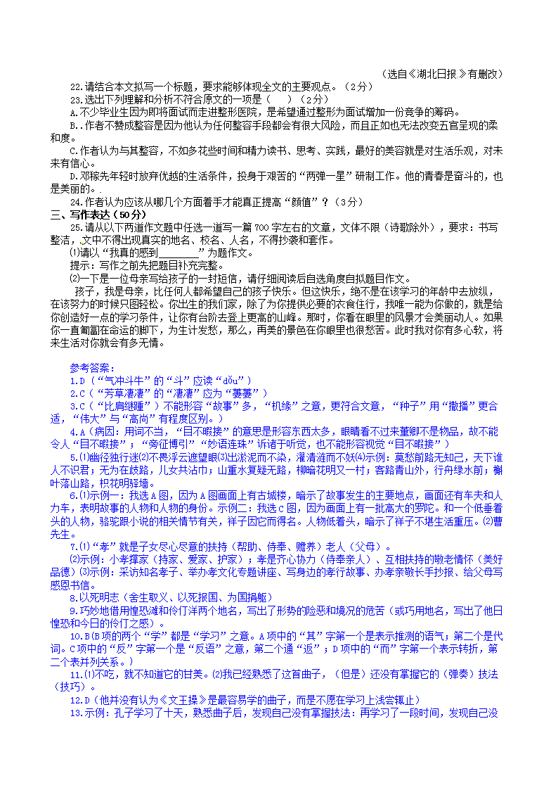 【文档名称】 2017年湖北省孝感市中考语文真题及答案(Word版).doc