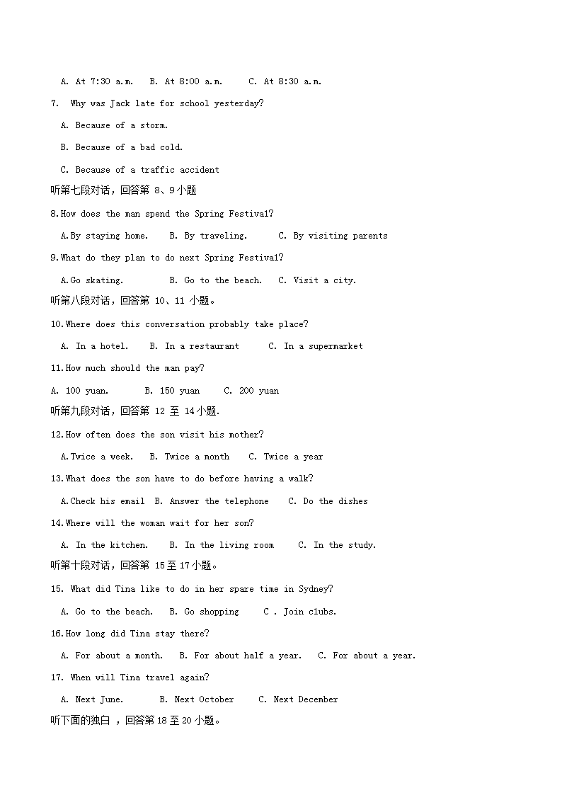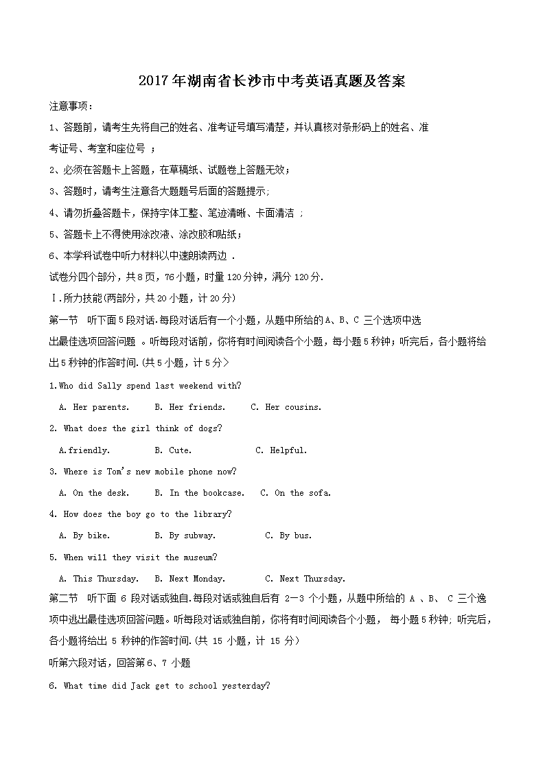 【文档预览】 无忧考网整理发布2017年湖南省长沙市中考英语真题及答案(Word版),前五页预览如下: