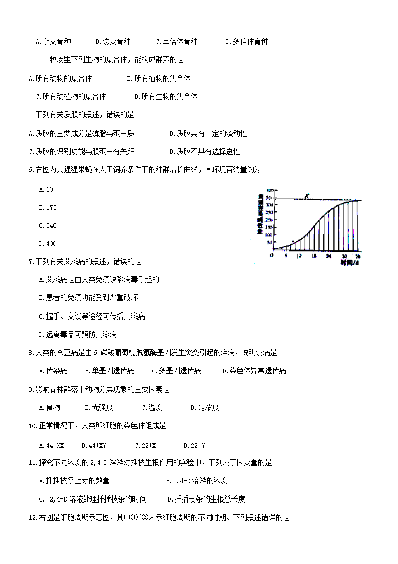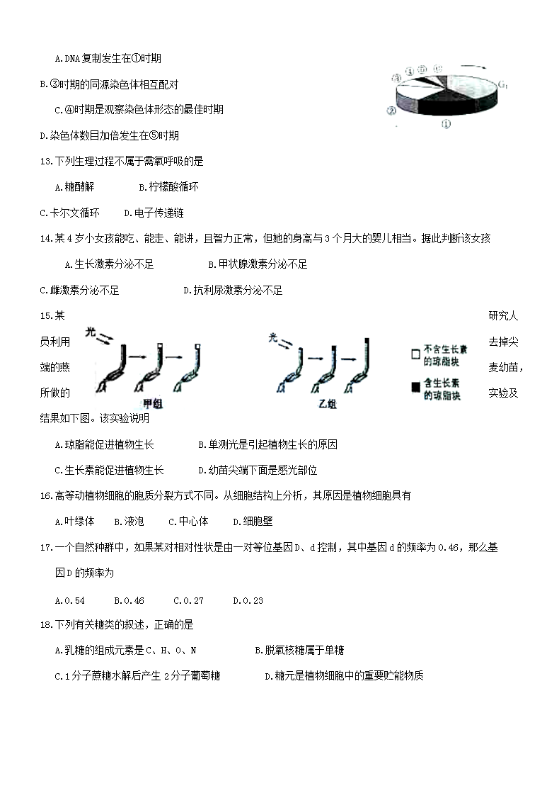 【文档名称】 2019年浙江普通高中会考生物真题及答案(Word版).doc