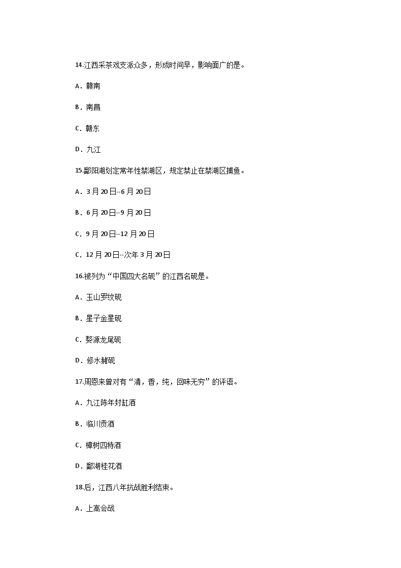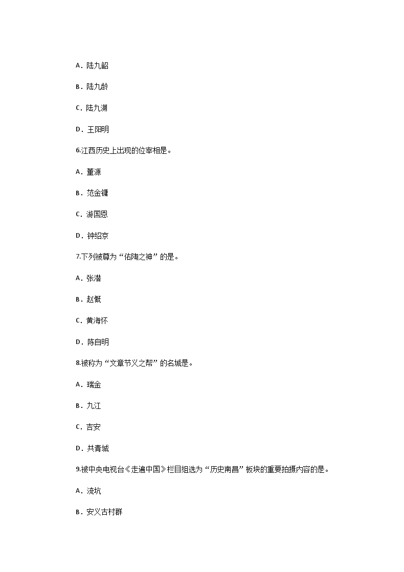 【文档名称】 2005年江西导游资格考试导游基础知识真题(Word版).doc