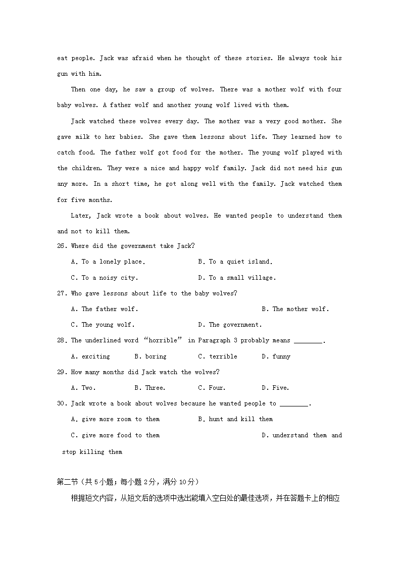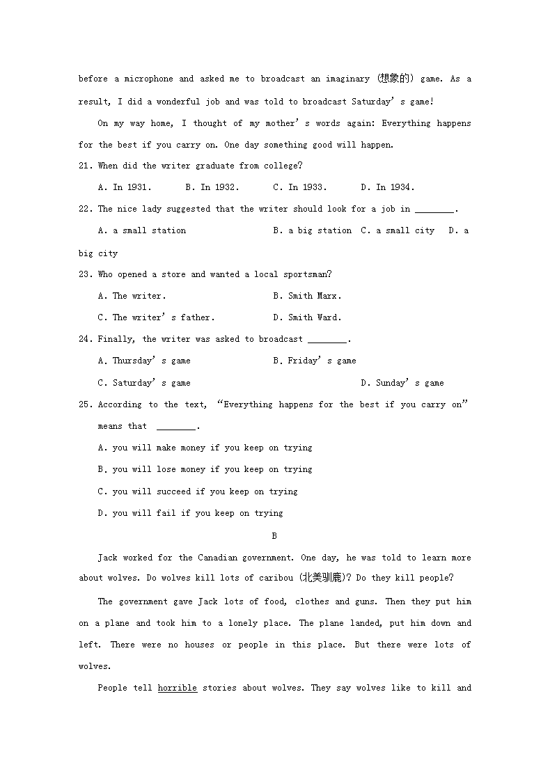 【文档预览】 无忧考网整理发布2019年广西壮族自治区普通高中会考英语真题及答案(Word版),前五页预览如下: