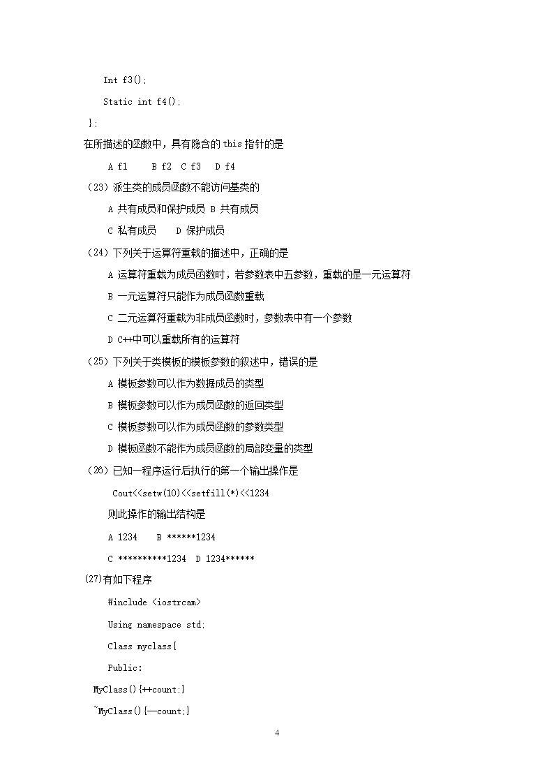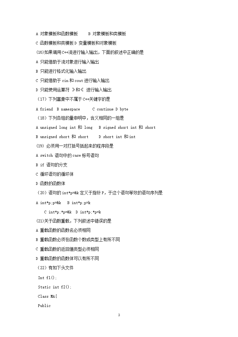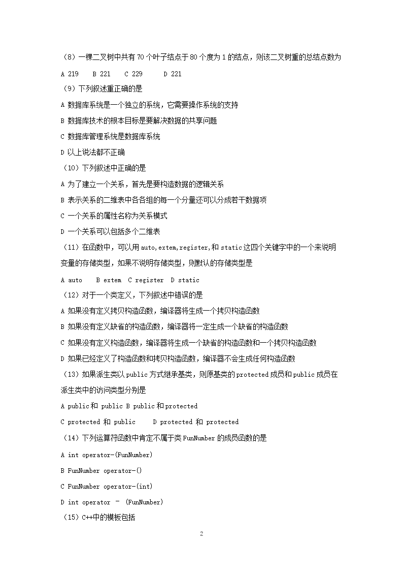 【文档名称】 2007年9月全国计算机二级C++考试真题及答案(Word版).doc