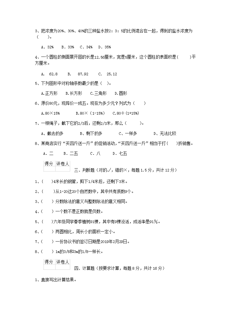 【文档预览】 无忧考网整理发布2019年四川乐山小升初数学真题及答案(Word版),前五页预览如下: