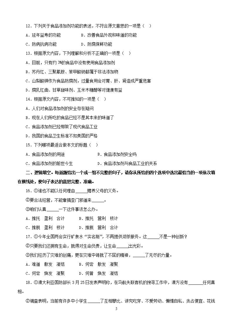【文档预览】 无忧考网整理发布2014年河北公务员行测考试真题及答案(Word版),前五页预览如下: