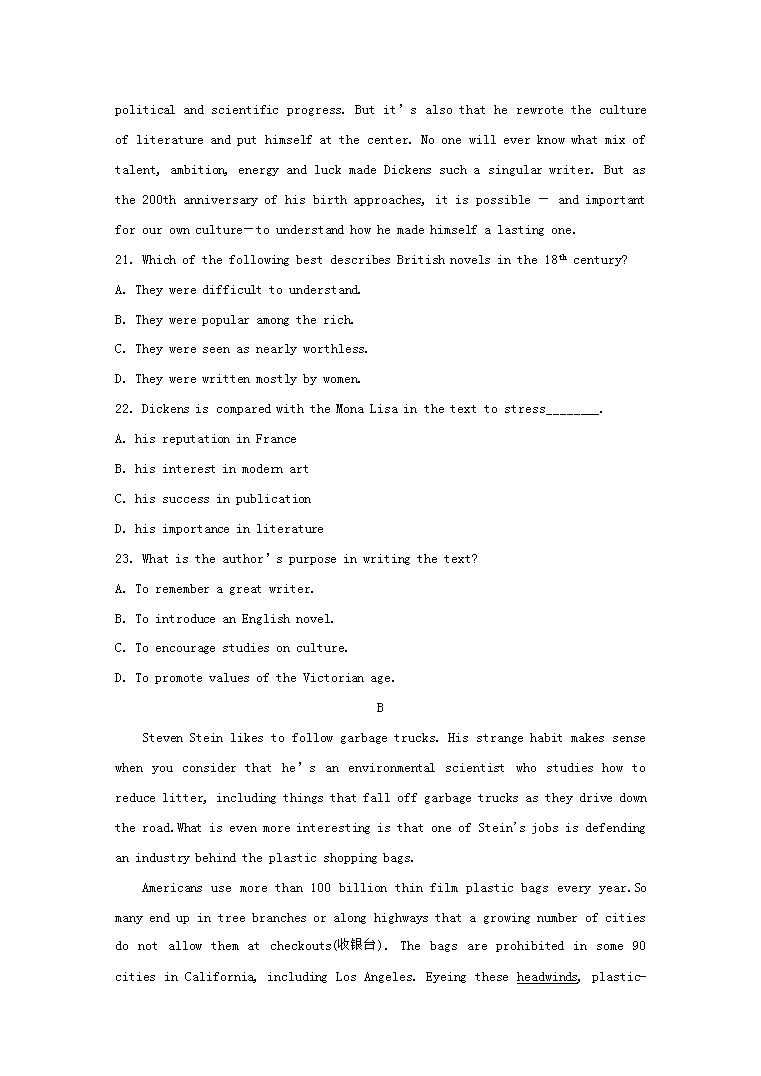 【文档名称】 2018年浙江高考英语真题及答案(Word版).doc