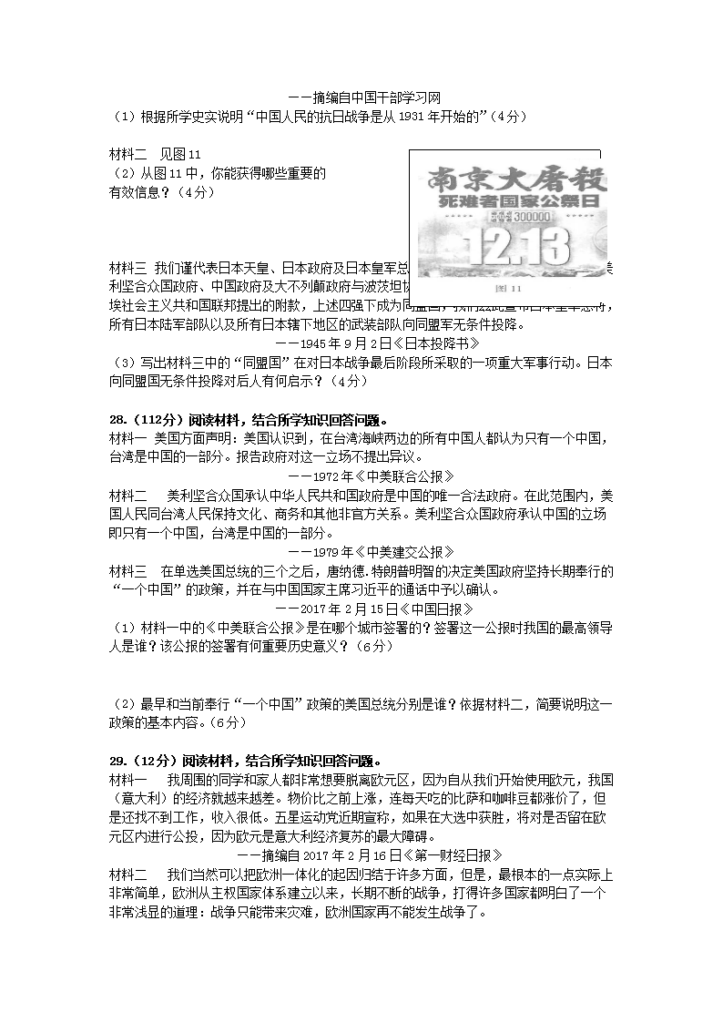 【文档预览】 无忧考网整理发布2017山东省临沂市中考历史真题及答案(Word版),前五页预览如下: