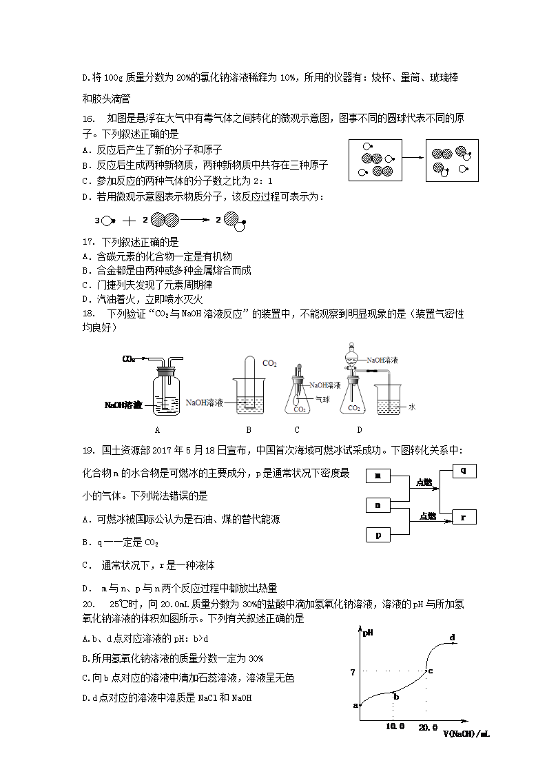 【文档名称】 2017山东省潍坊市中考化学真题及答案(Word版).doc