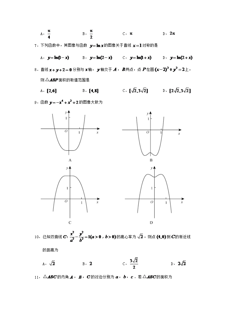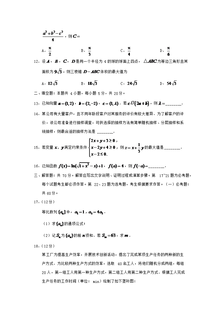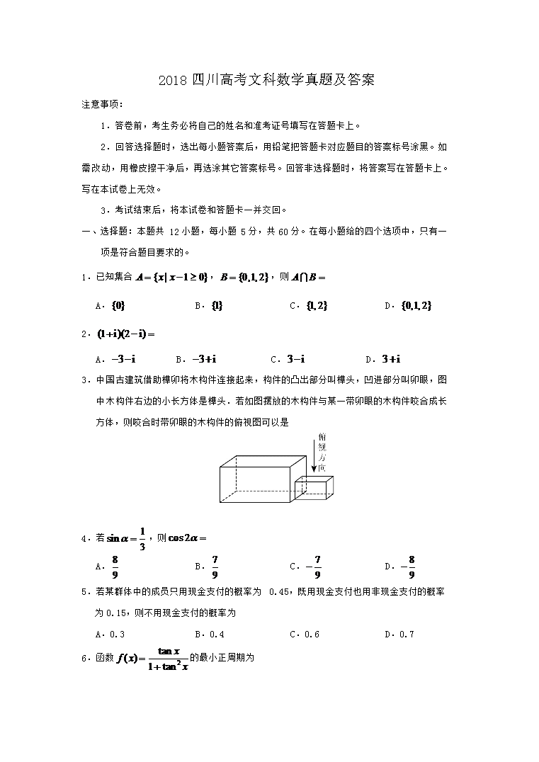 【文档名称】 2018四川高考文科数学真题及答案(Word版).doc