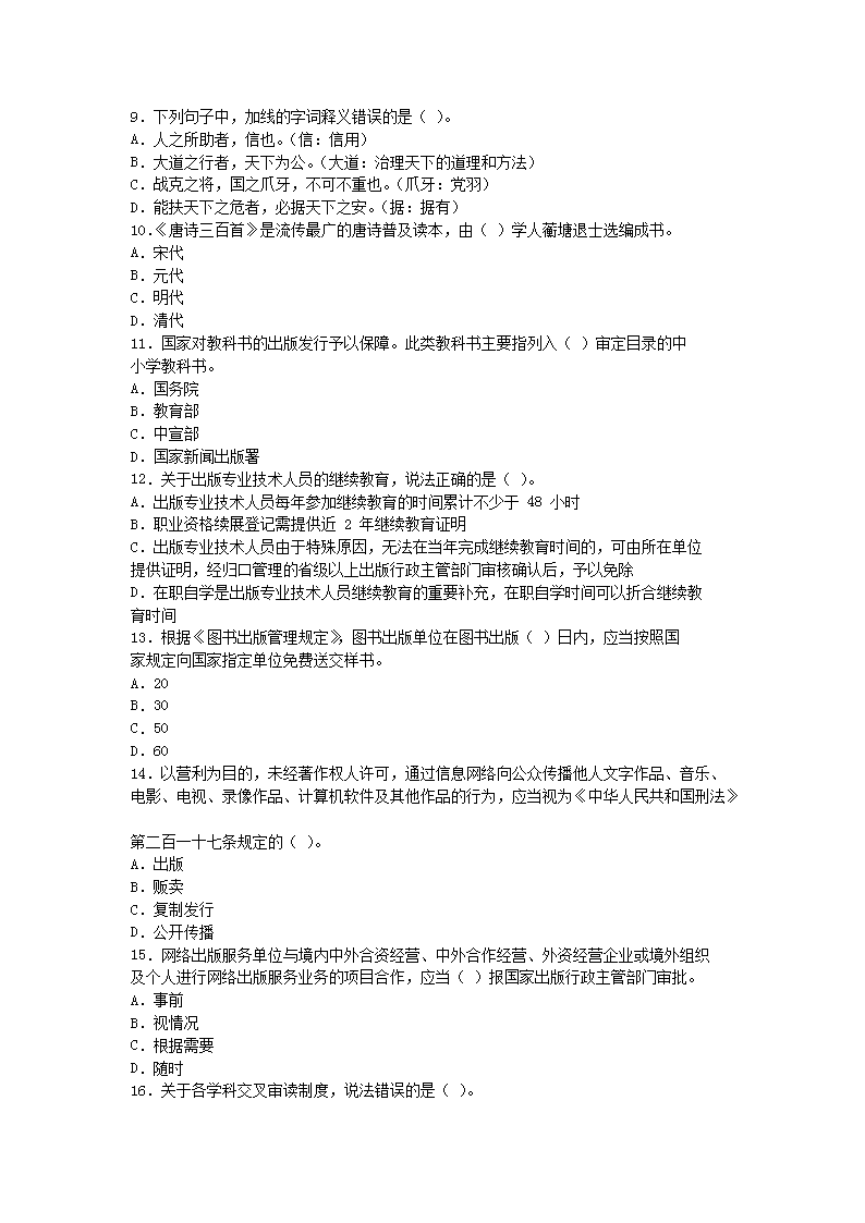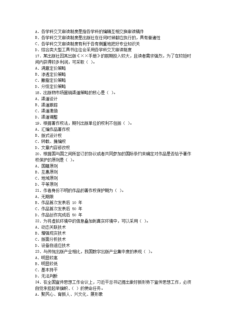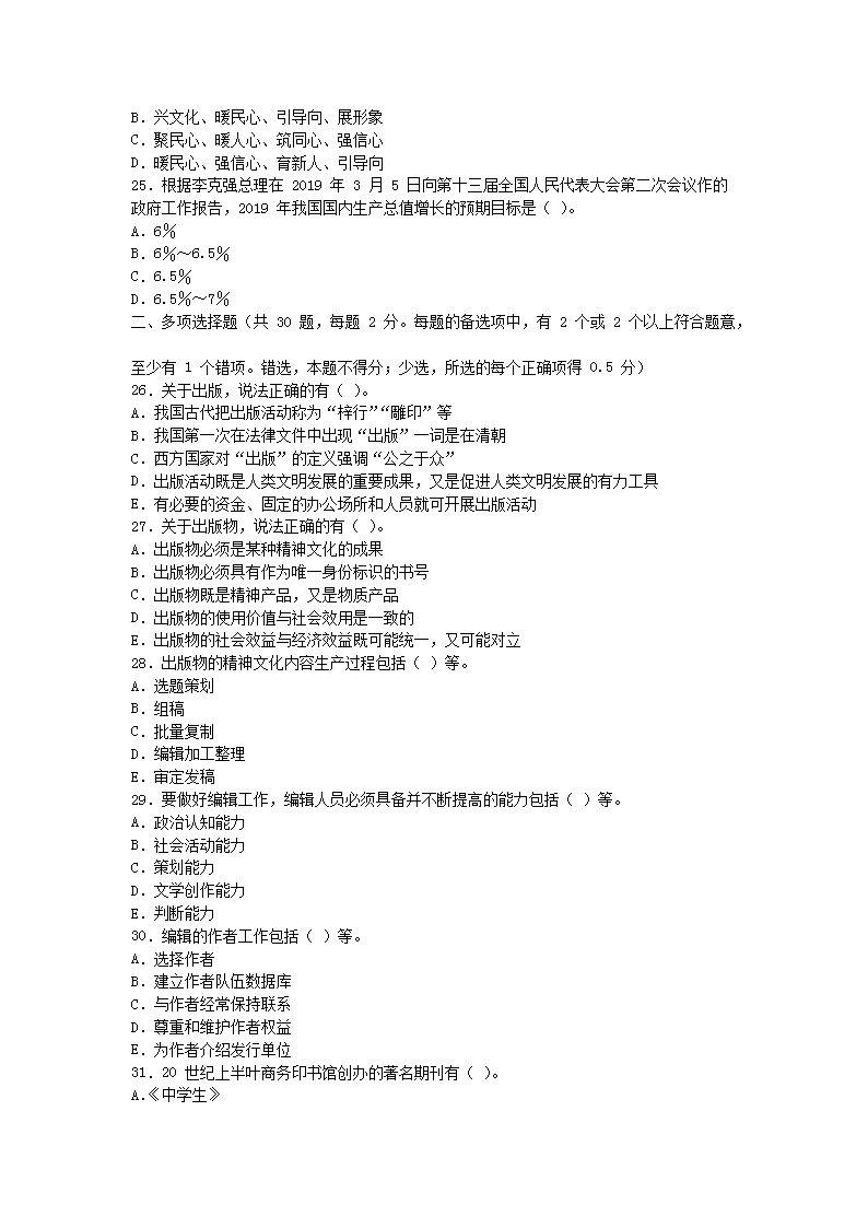 【文档名称】 2019中级出版专业资格考试基础知识真题(Word版).doc