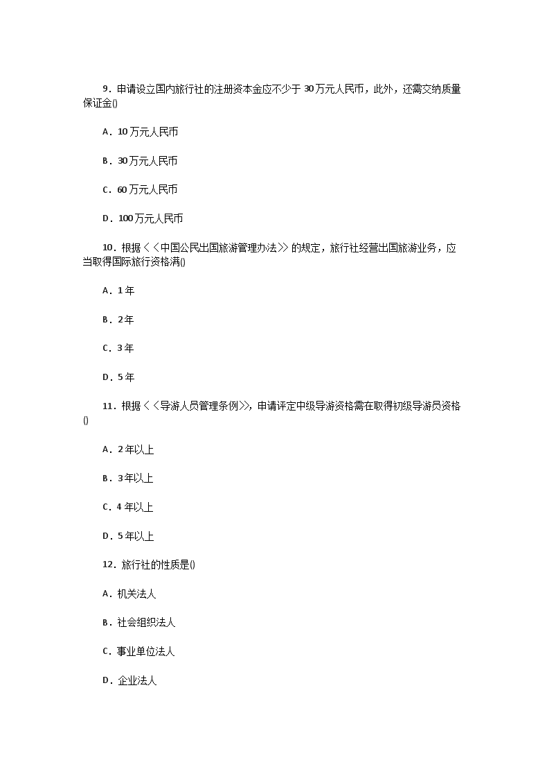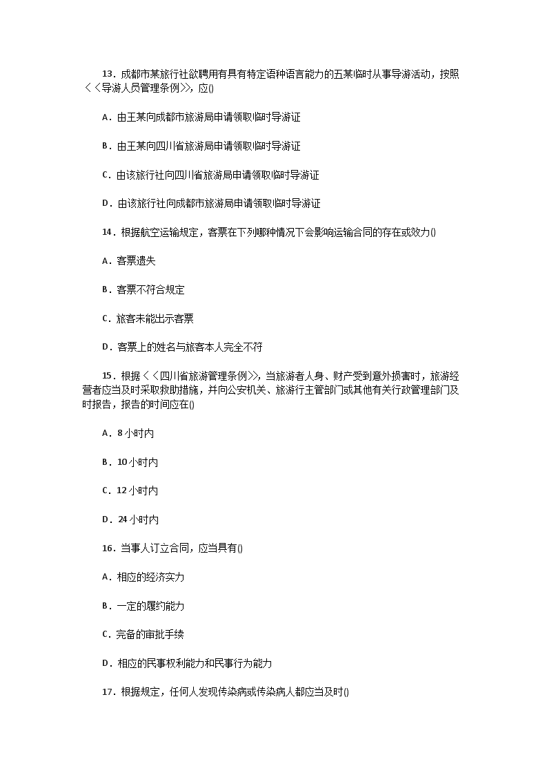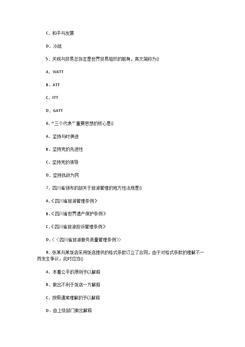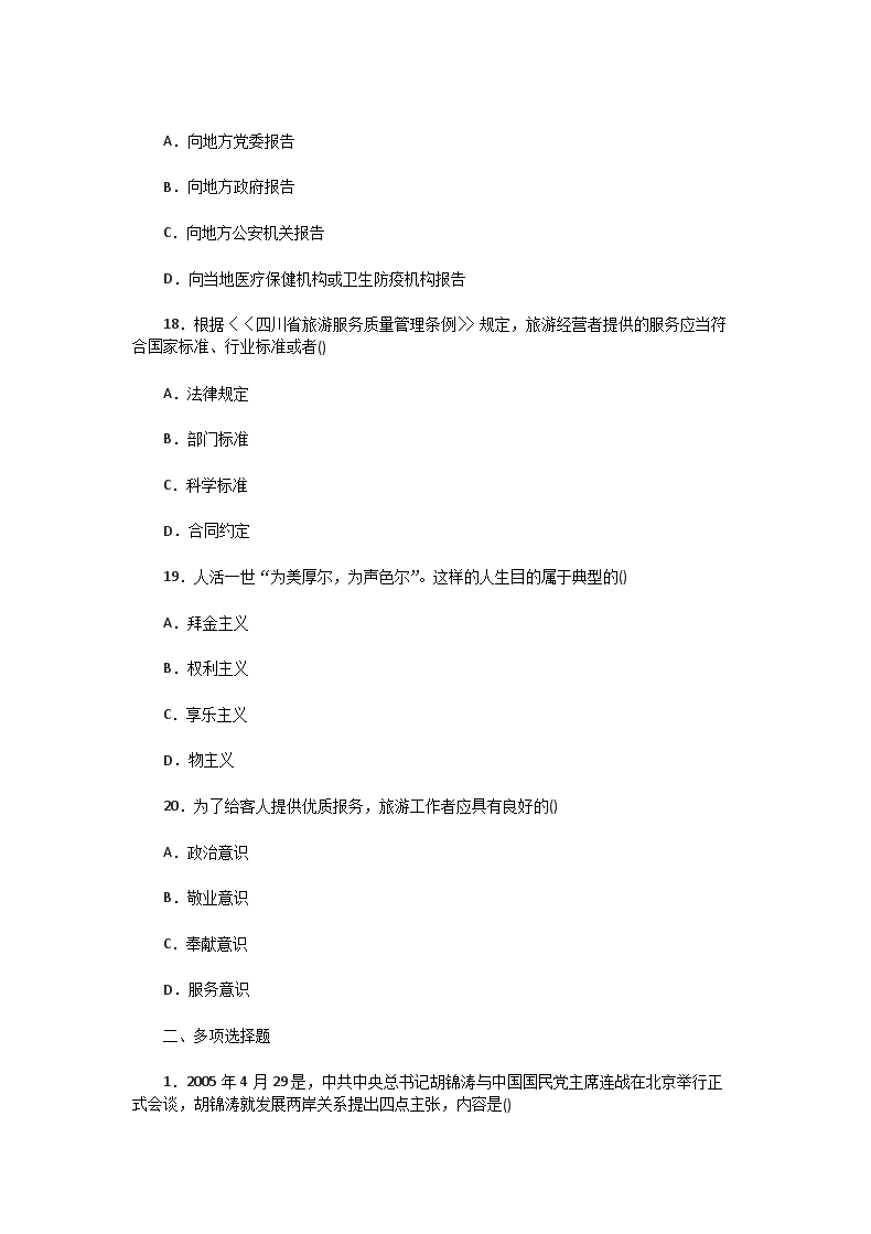 【文档名称】 2005年四川导游资格考试政策与法规真题(Word版).doc