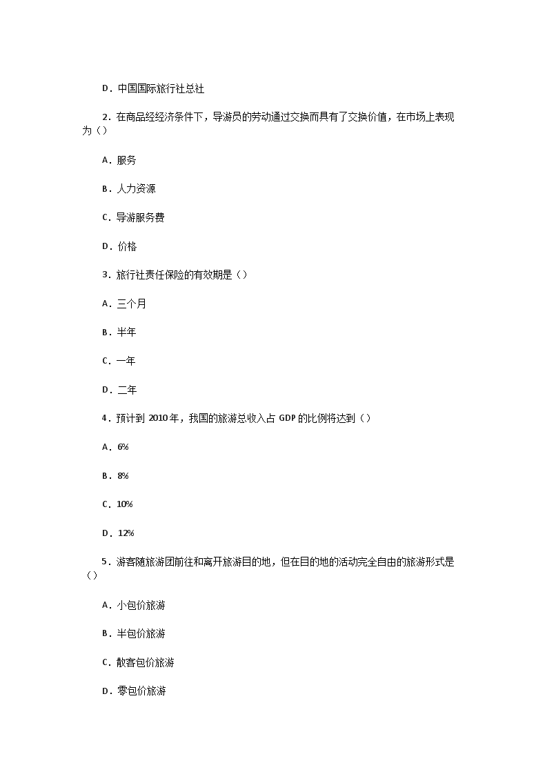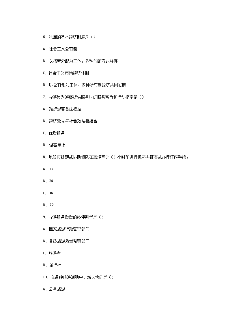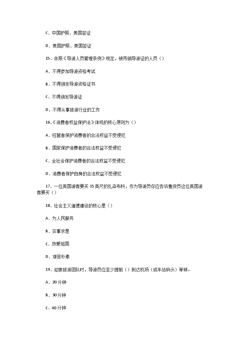 【文档名称】 2005年云南导游资格证考试导游业务知识真题(Word版).doc