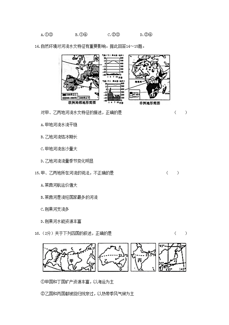 【文档名称】 2019年山东滨州高中会考地理真题(Word版).doc