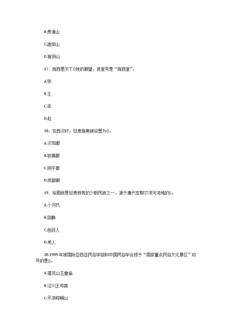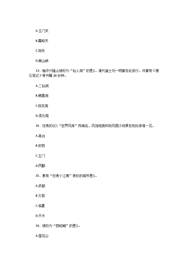 【文档名称】 2003年甘肃导游资格考试导游基础知识真题(Word版).doc