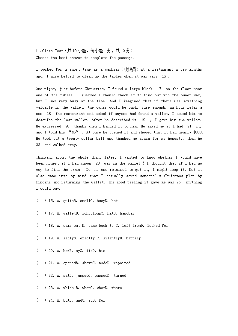 【文档名称】 2017年黑龙江省大庆市中考英语试题及答案(Word版).doc