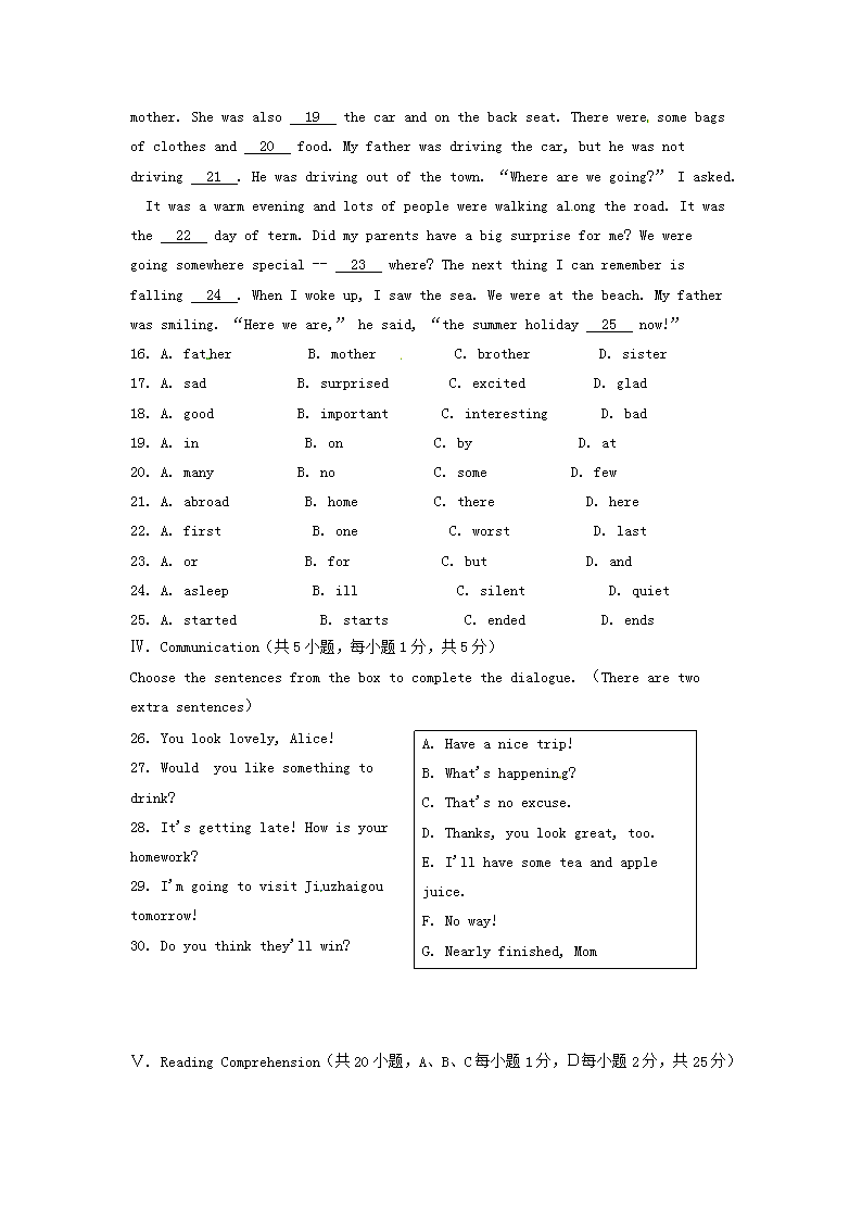 【文档名称】 2016年黑龙江省大庆市中考英语试题及答案(Word版).doc