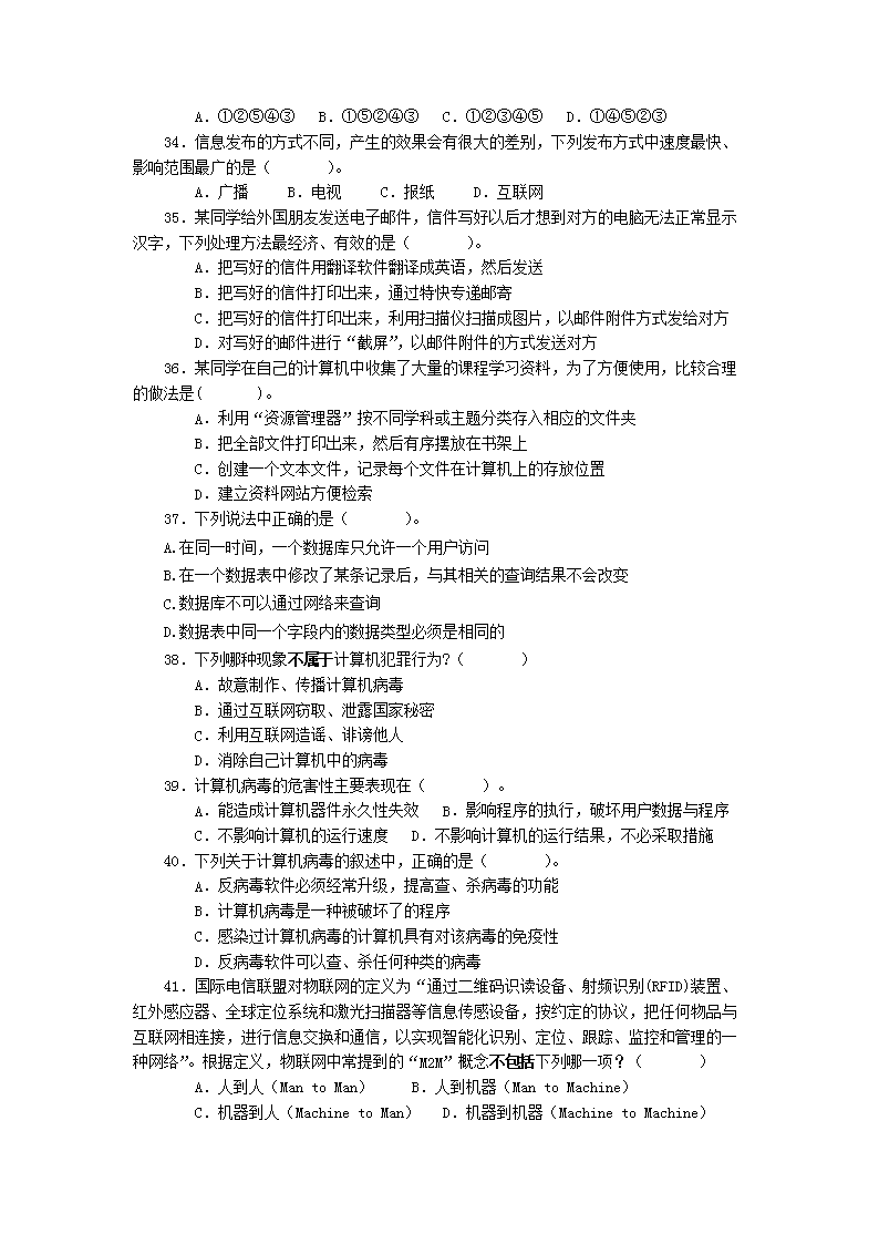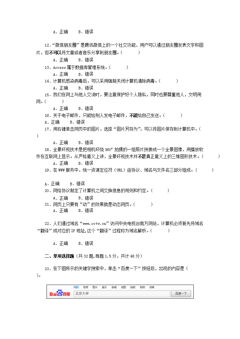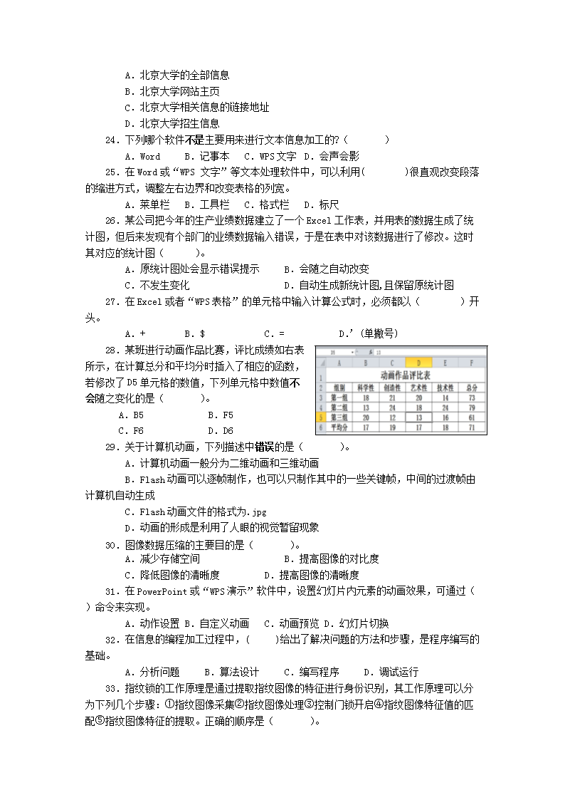 【文档名称】 2018年重庆普通高中会考信息技术真题及答案(Word版).doc