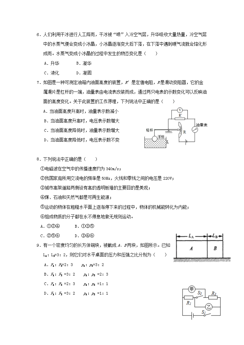 【文档名称】 2015年黑龙江省大庆市中考物理试题及答案(Word版).doc