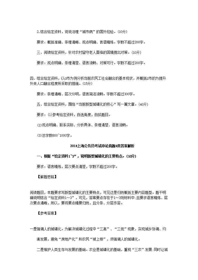 【文档名称】 2014年上海公务员申论考试真题及答案B卷(Word版).doc