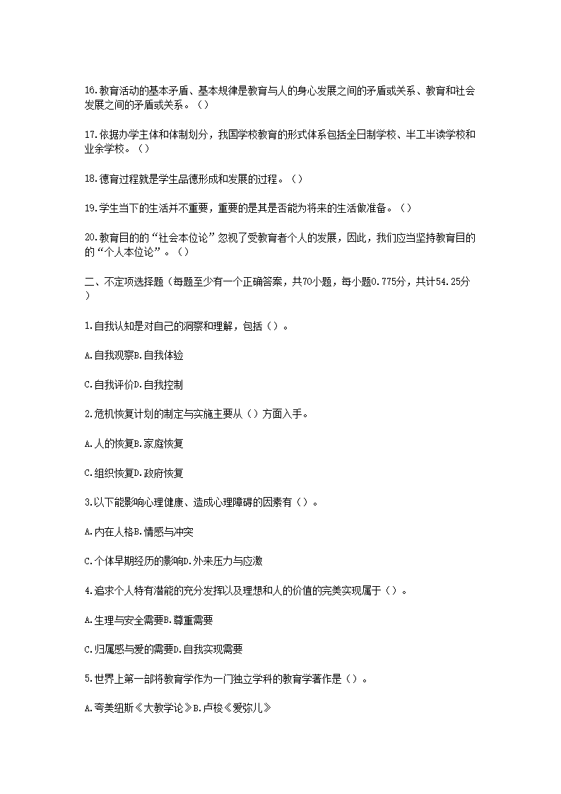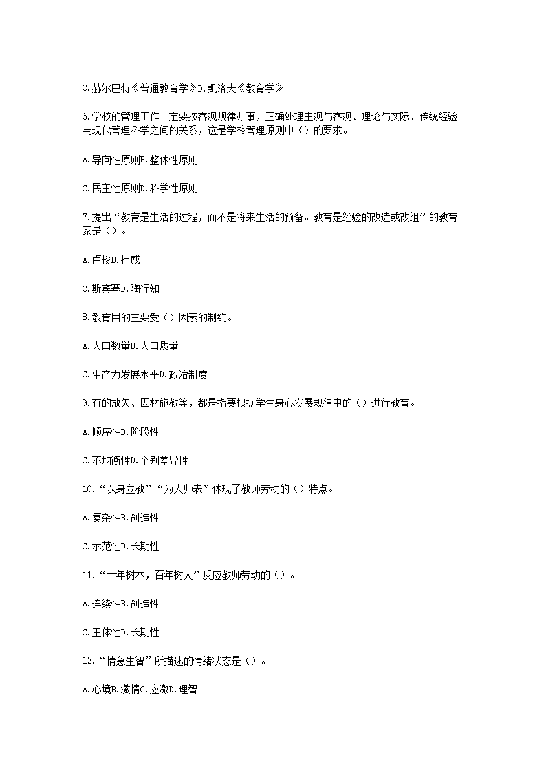【文档名称】 2014内蒙古赤峰红山区教师招聘考试教育理论综合知识真题(Word版).doc