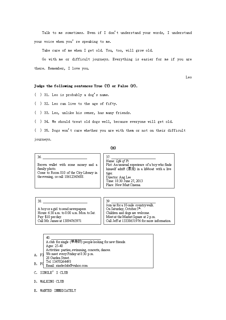 【文档名称】 2013年黑龙江省大庆市中考英语试题及答案(Word版).doc