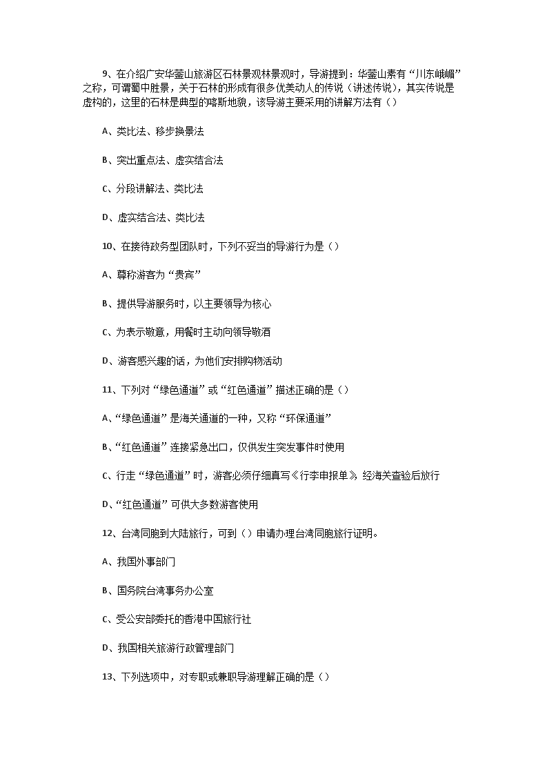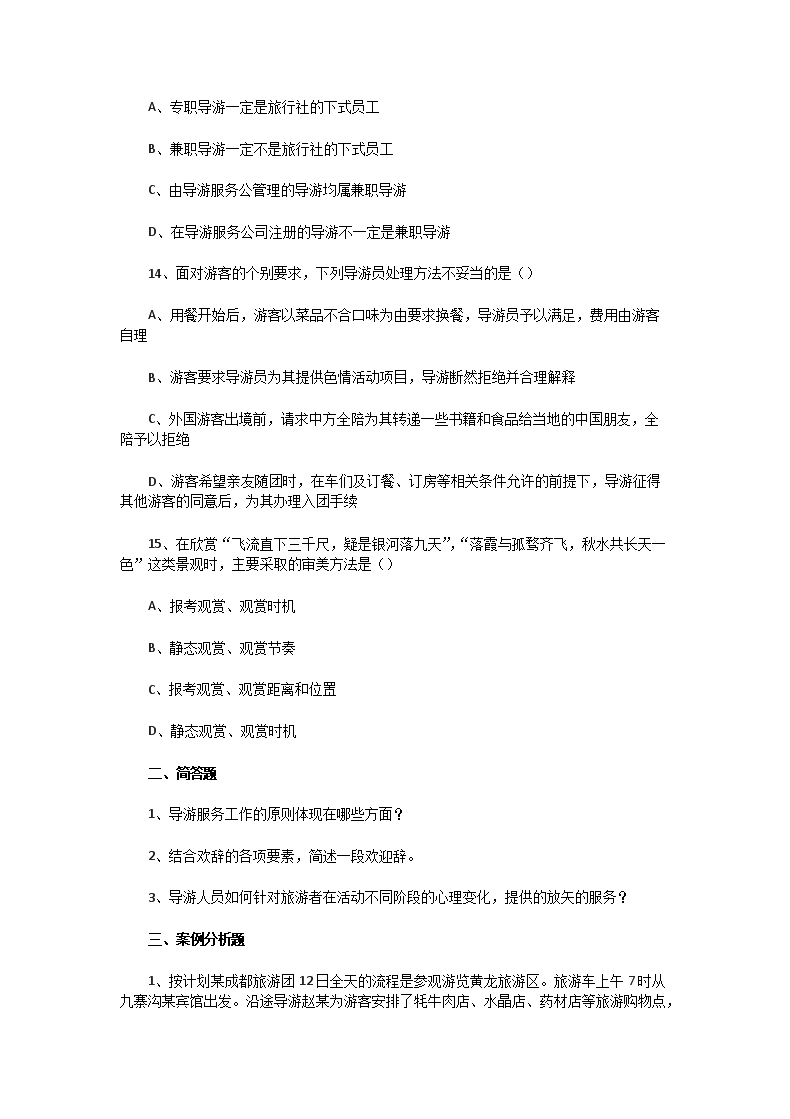 【文档名称】 2004年四川导游资格考试导游实务真题(Word版).doc