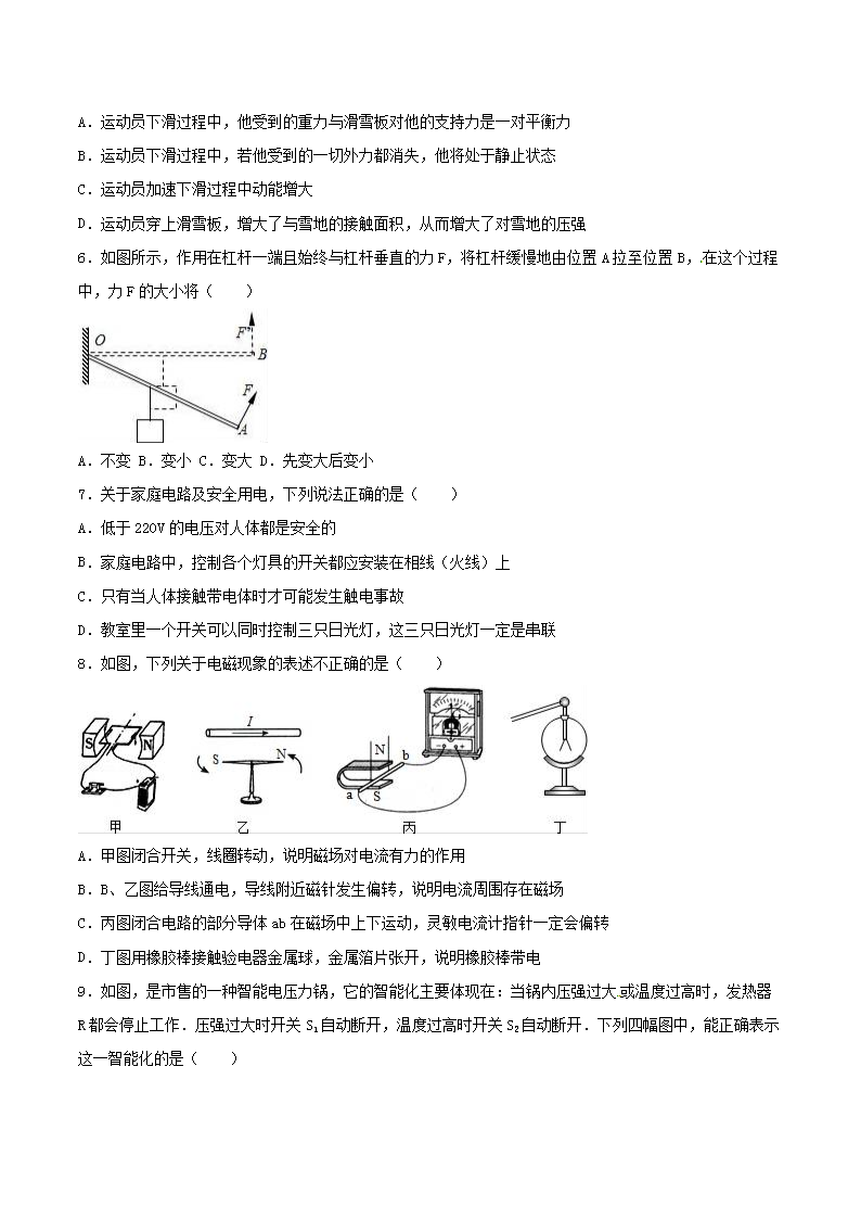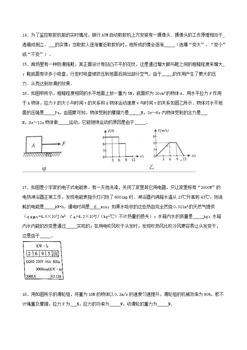 【文档名称】 2016年四川省遂宁市中考物理真题及答案(Word版).doc