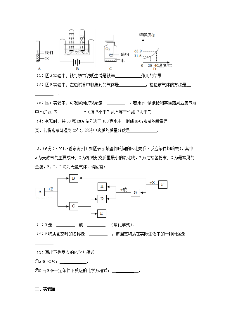 【文档名称】 2014年贵州省黔东南州中考化学试题及答案(Word版).doc