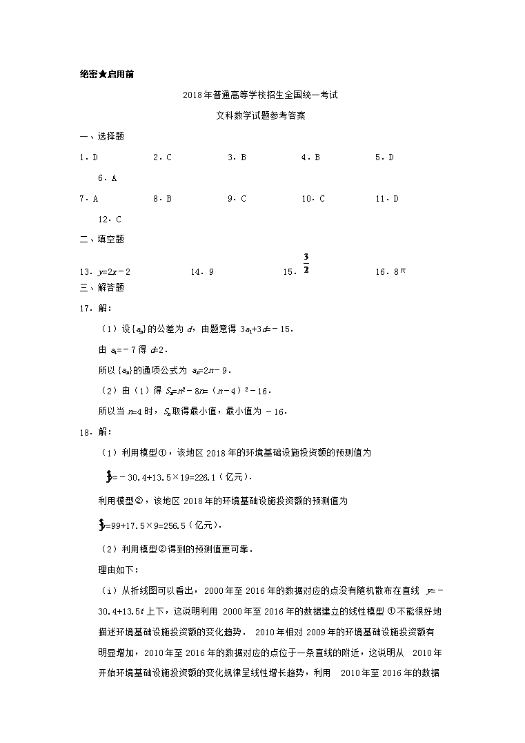 【文档名称】 2018重庆高考文科数学真题及答案(Word版).doc