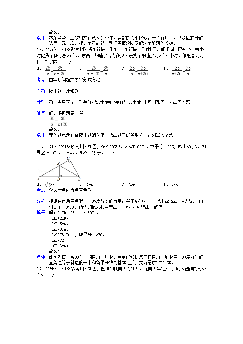 【文档名称】 2018年贵州省黔南州中考数学试题及答案(Word版).doc