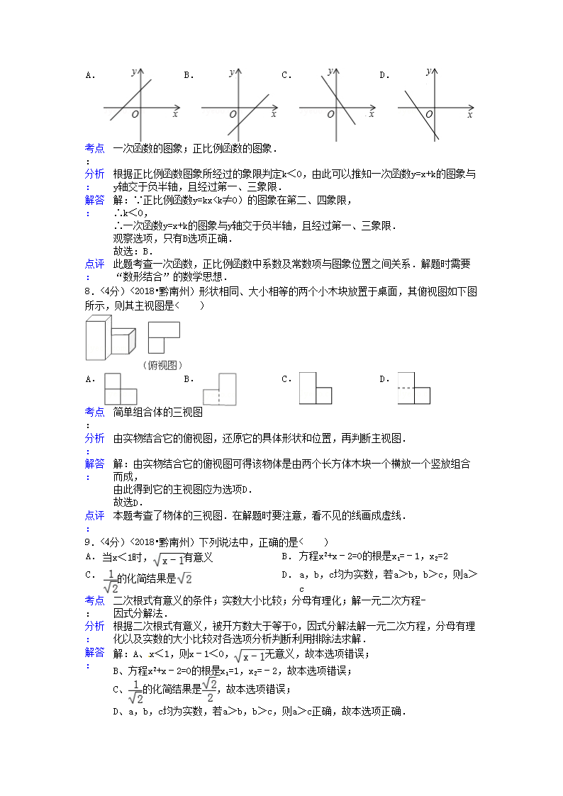 【文档预览】 无忧考网整理发布2018年贵州省黔南州中考数学试题及答案(Word版),前五页预览如下:
