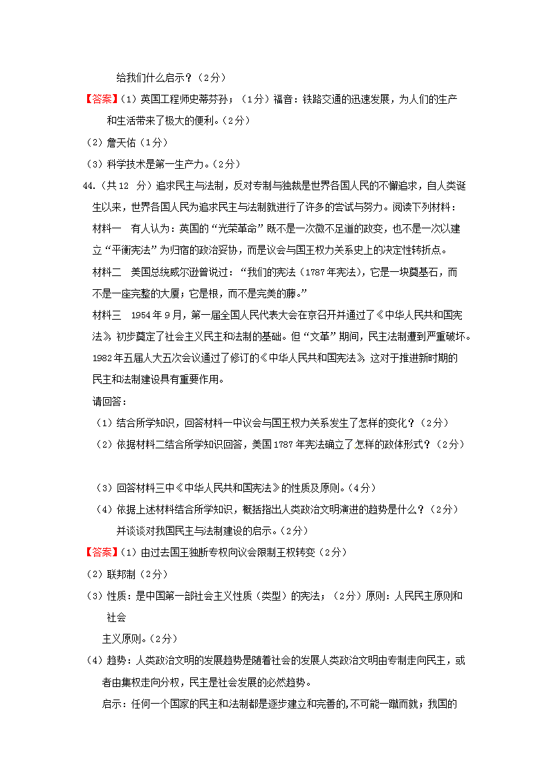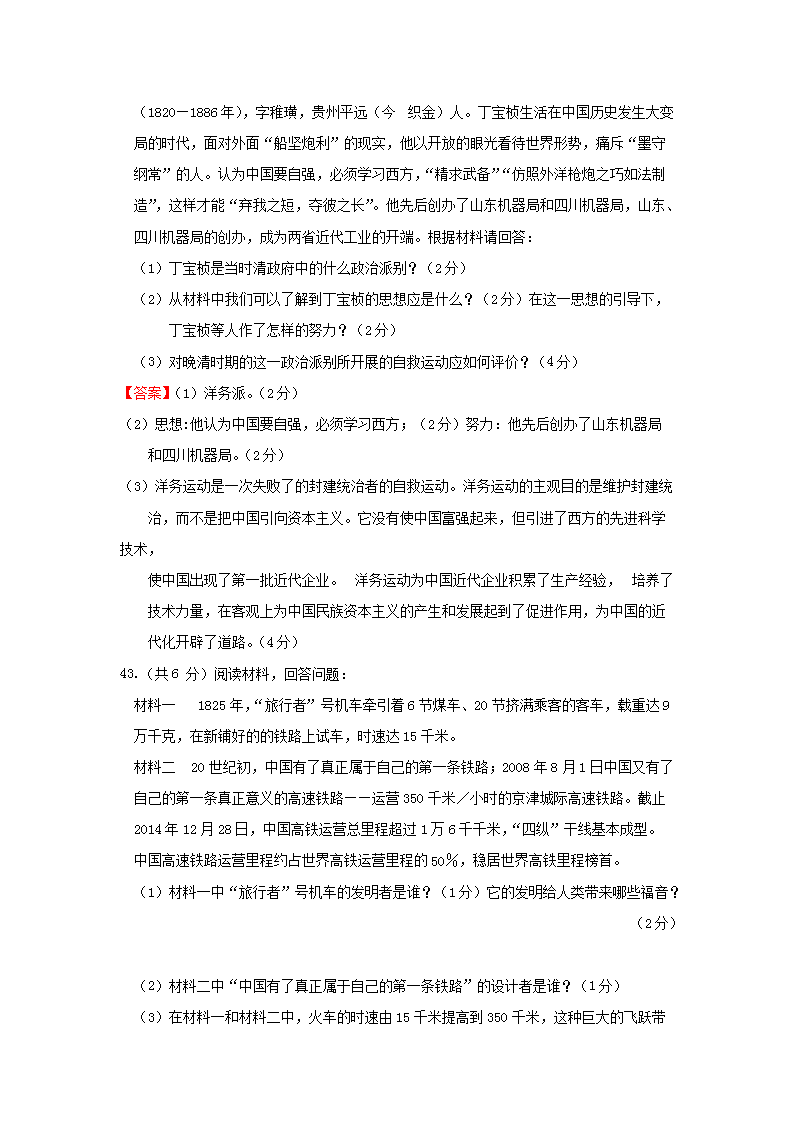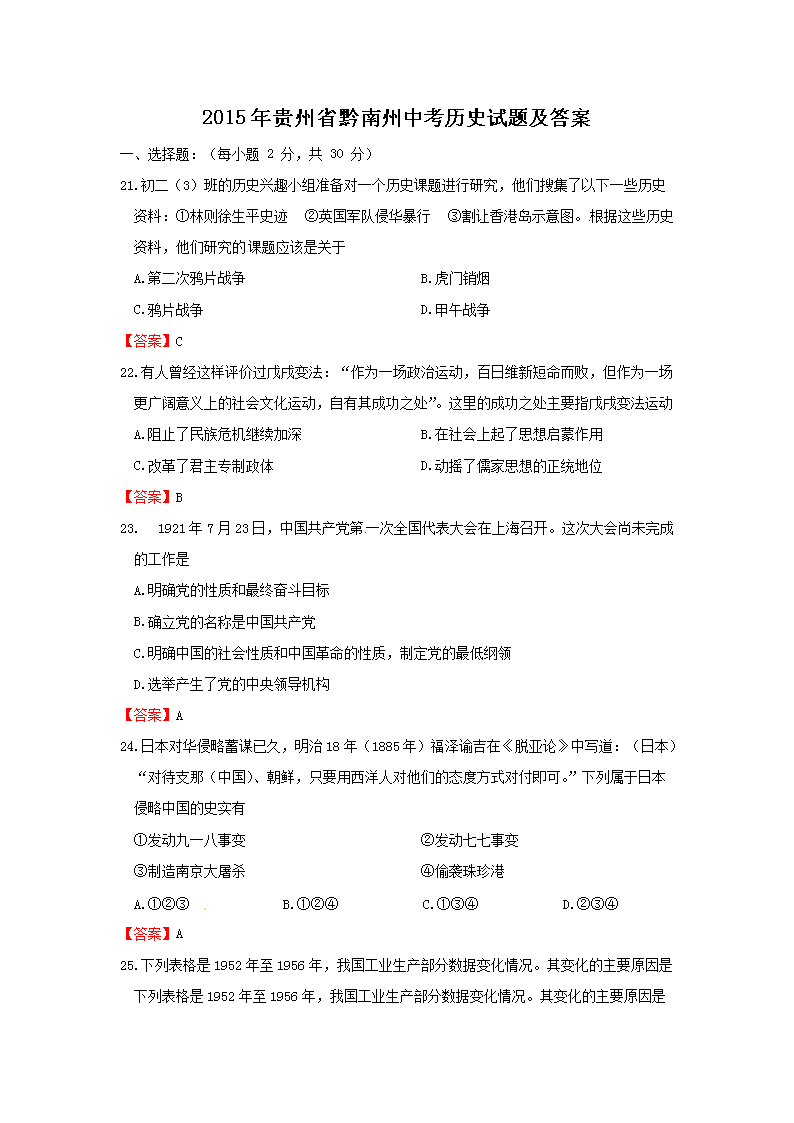 【文档名称】 2015年贵州省黔南州中考历史试题及答案(Word版).doc