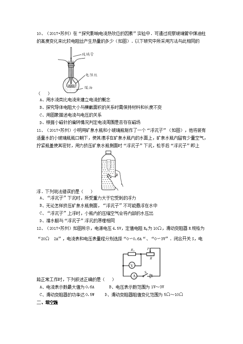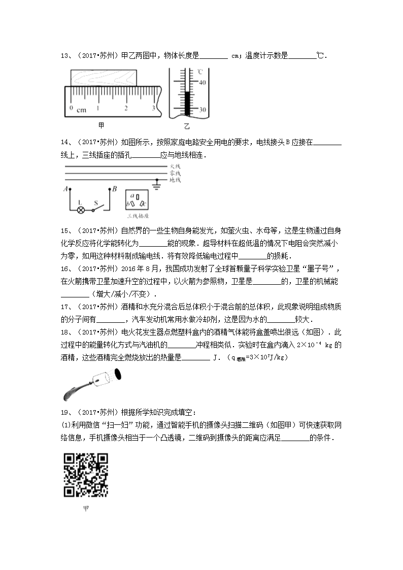 【文档名称】 2017江苏省苏州市中考物理真题及答案(Word版).doc
