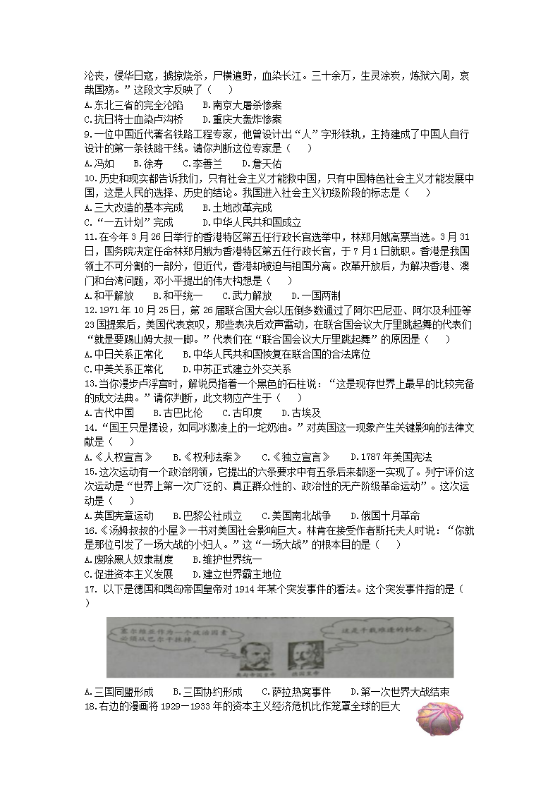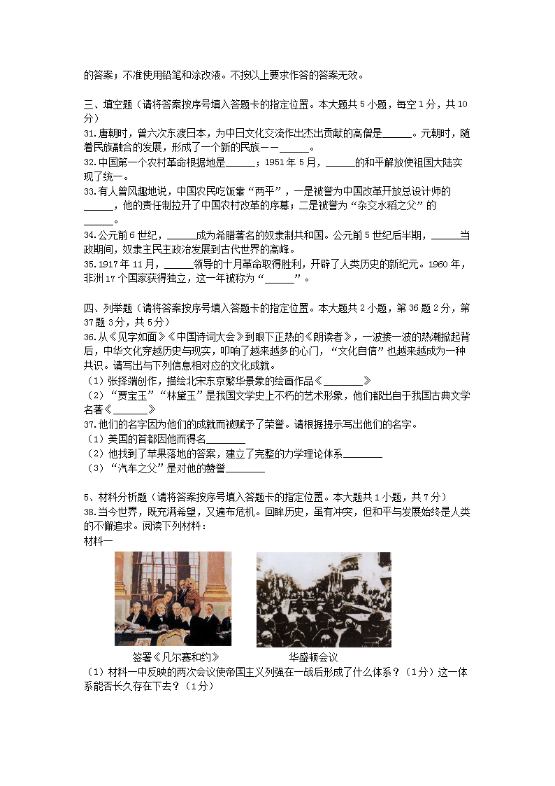 【文档名称】 2017江苏省无锡市中考历史真题及答案(Word版).doc