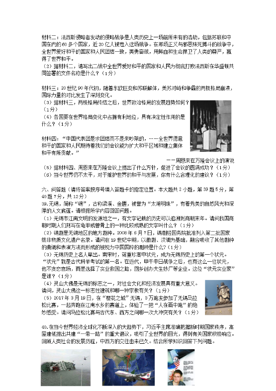 【文档预览】 无忧考网整理发布2017江苏省无锡市中考历史真题及答案(Word版),前五页预览如下: