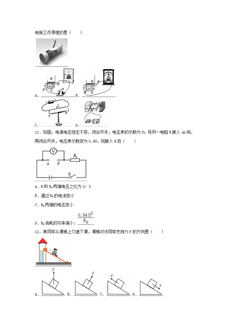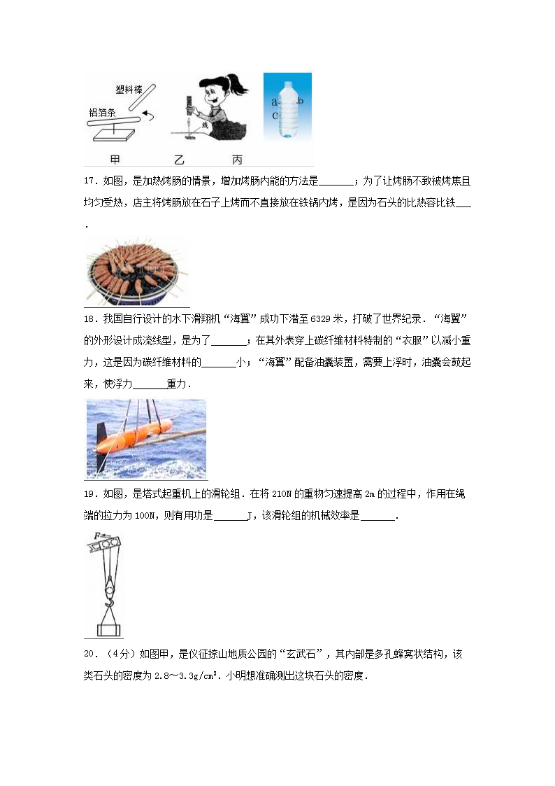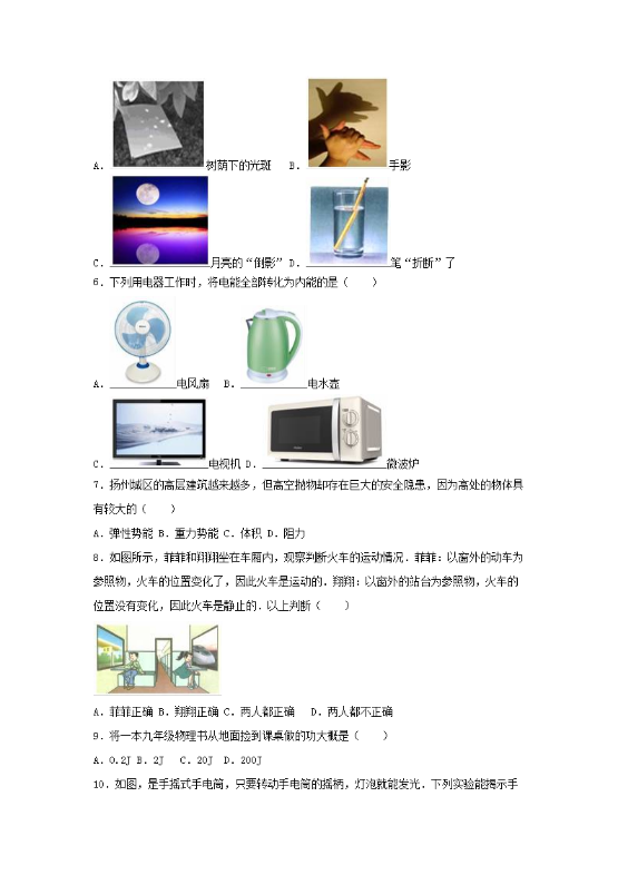 【文档名称】 2017江苏省扬州市中考物理真题及答案(Word版).doc