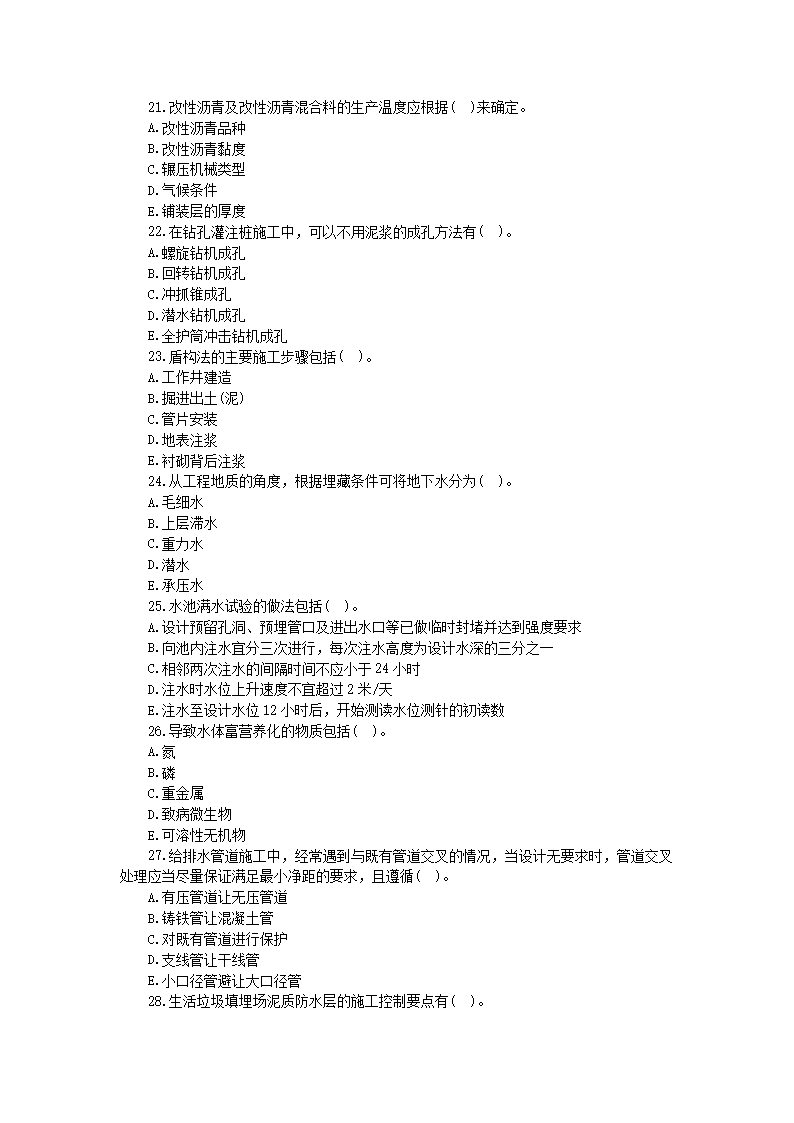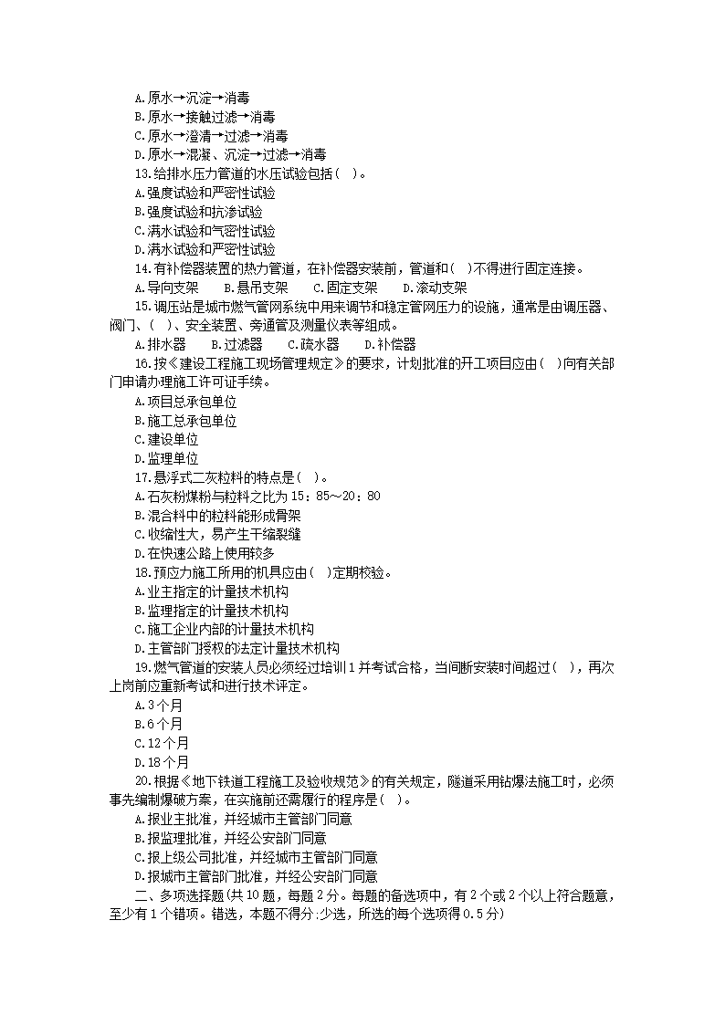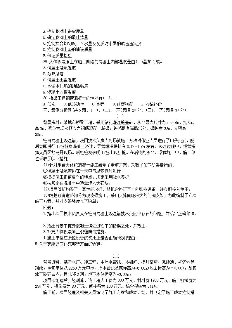 【文档预览】 无忧考网整理发布2007年一级建造师市政工程考试真题及答案(Word版),前五页预览如下: